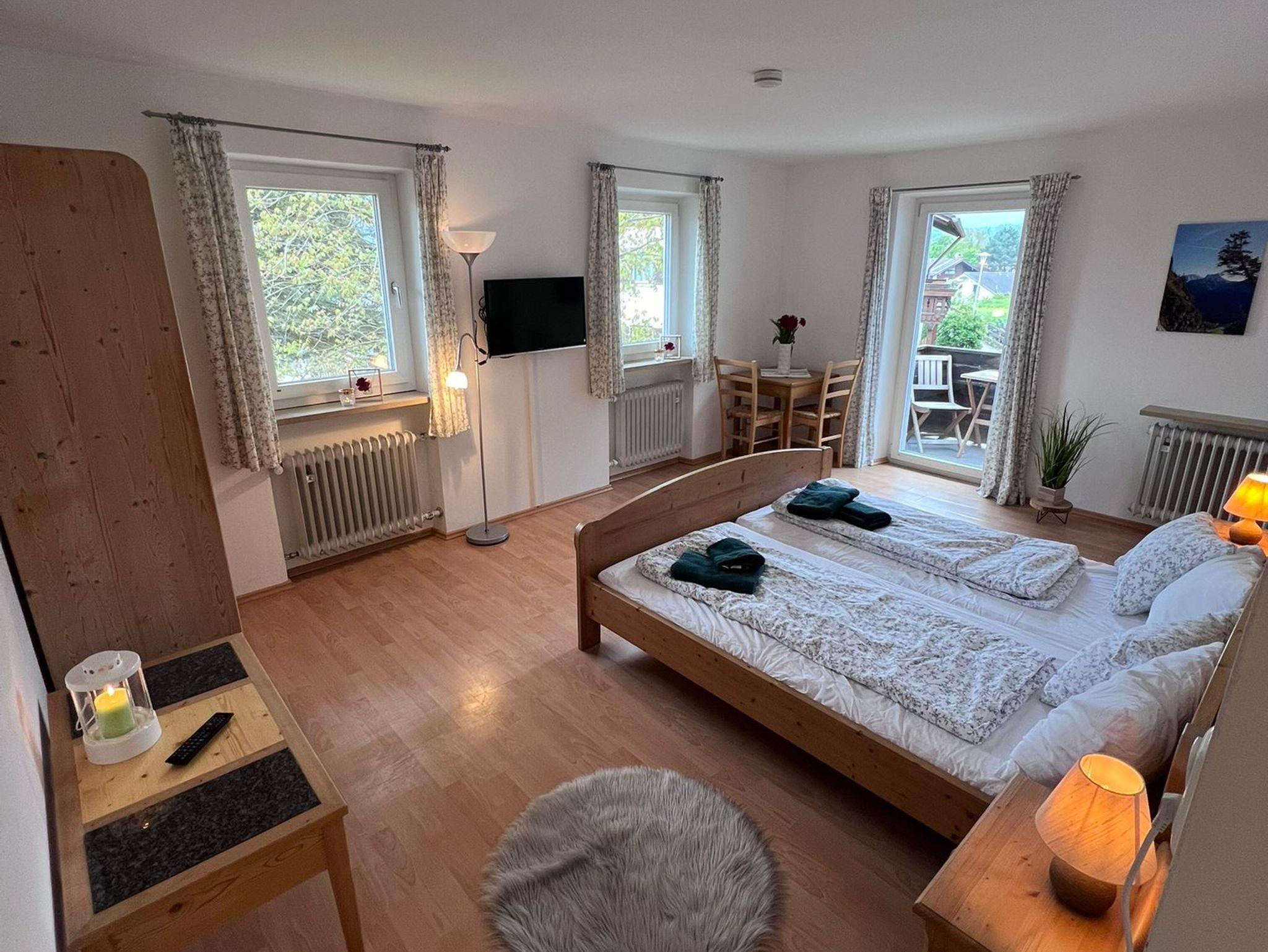 Unser gemütliches Doppel-/Dreibettzimmer mit großem Balkon und atemberaubendem Blick auf die Alpen bietet Ihnen die perfekte Gelegenheit, um die Schönheit der bayerischen Landschaft zu genießen. Lassen Sie sich vom Panoramablick auf die schneebedeckten Gipfel verzaubern und entspannen Sie in unserem komfortabel ausgestatteten Zimmer.