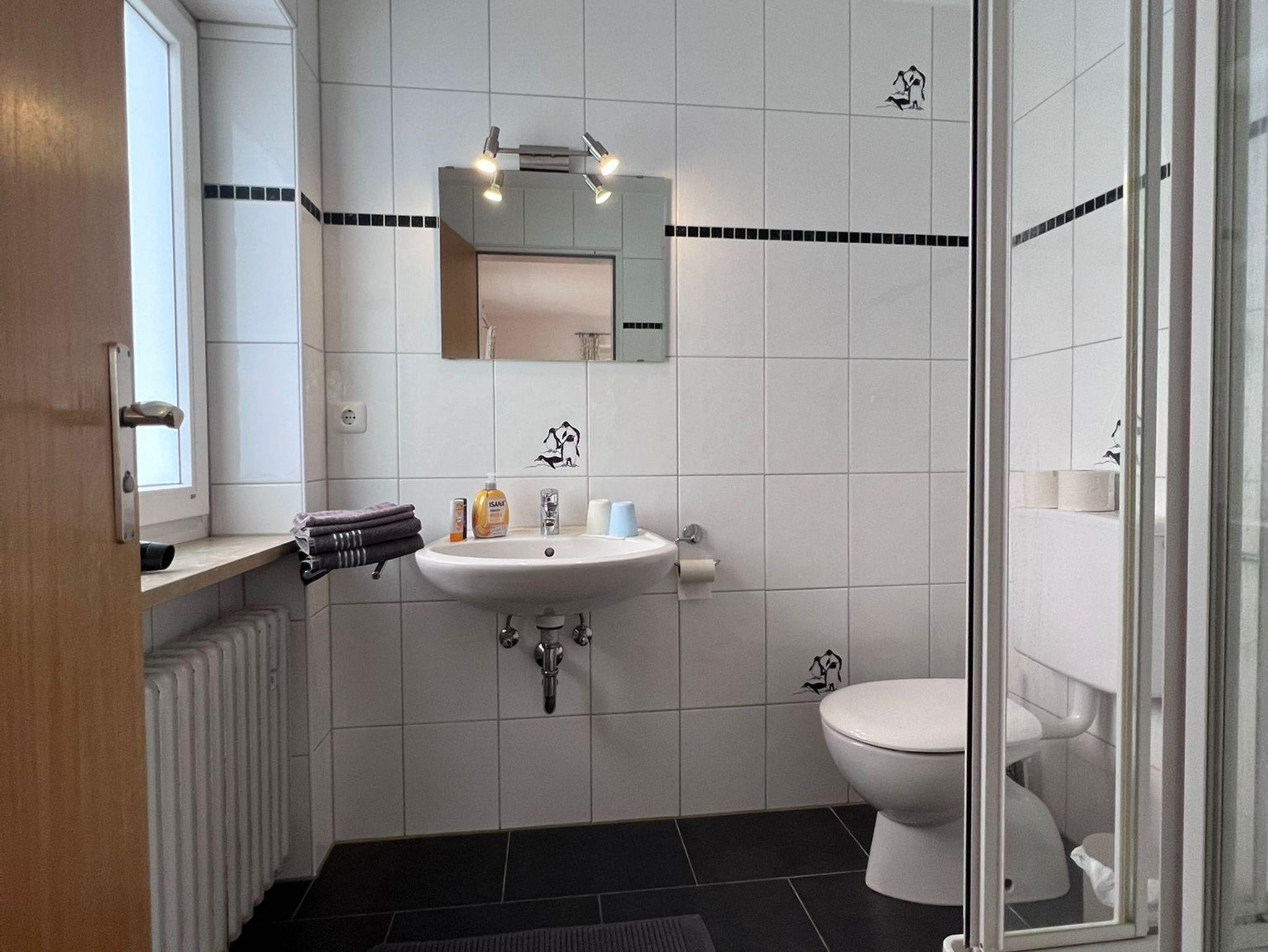 Neues Badezimmer mit Dusche und WC: Starten Sie erfrischt in den Tag mit einer Dusche in unserem modernen Bad.
