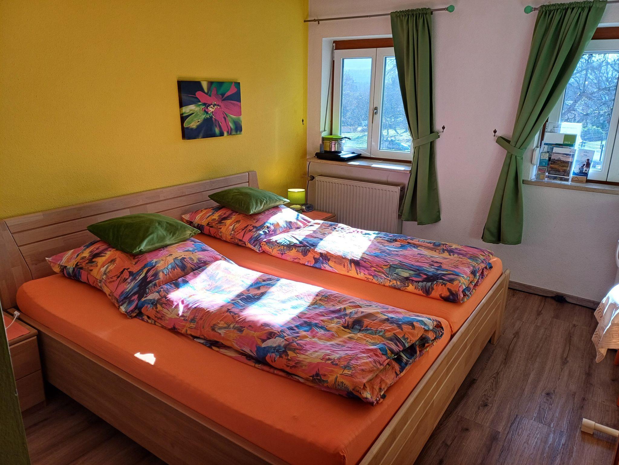 Letzte Teilrenovierung 2024, Flasche Wasser gratis. Gemütlich eingerichtete Zimmer mit Doppelbett im Landhausstil mit separater Sitzmöglichkeit + Tisch, inkl. Dusche/WC, Kühlschrank als Minibar, Mikrowelle, Kochplatte, Wasserkocher, Flachbild-TV (32) im Zimmer (Kabel) und kostenlosem Internet (WLAN). Auch gut geeignet für Monteure und Arbeiter. Nur EIN Haustier € 11,-
