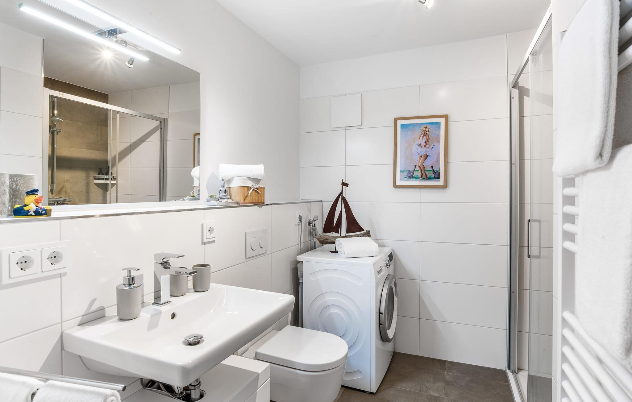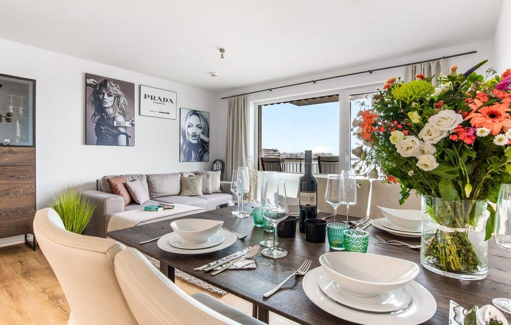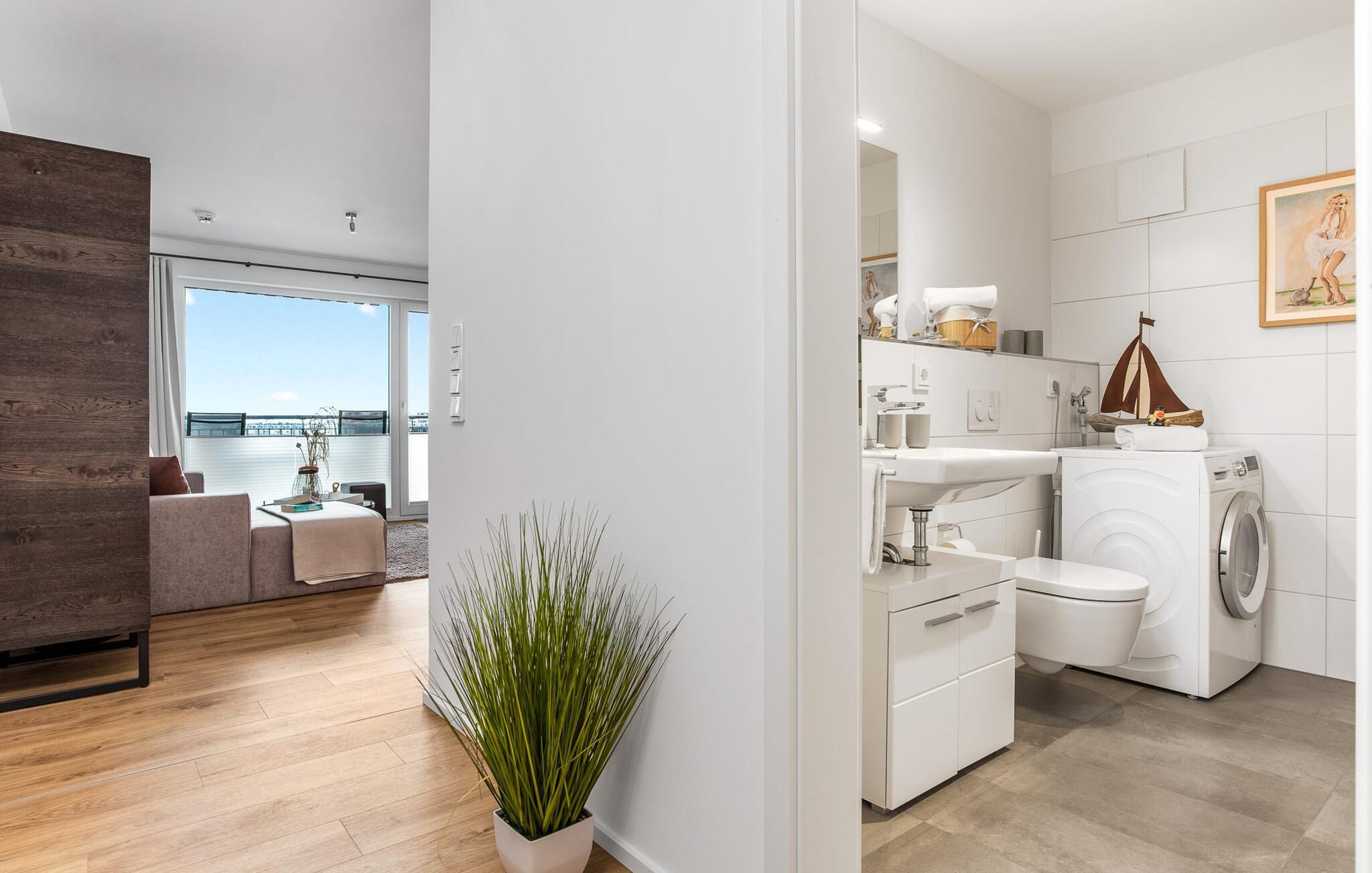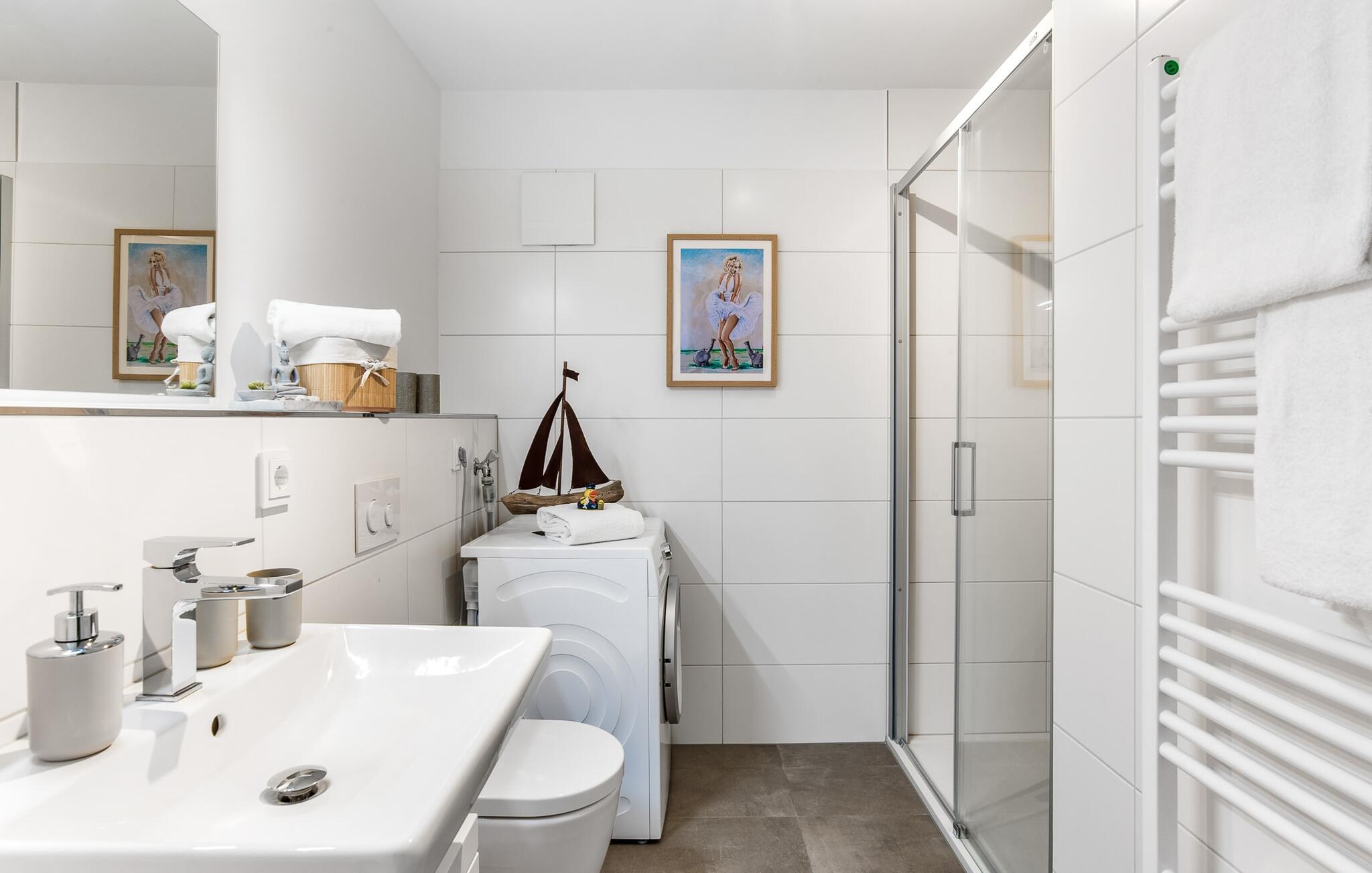 Elegant og moderne, centralt og alligevel stille, kombineret med en fantastisk udsigt over Olpenitz havn - det beskriver lejligheden PIER 10. Ferielejligheden for op til 4 personer ligger direkte på den livlige havnepromenade i ferieområdet Olpenitz og tilbyder alt, hvad I kan have brug for til et afslappende ophold. Ferie ved vandet kan forestille sig. Promenaden med sine små, fristende butikker og et velassorteret EDEKA-marked med bageri ligger bogstaveligt talt for gæstens fødder og indbyder til slentretur og indkøb. Den umiddelbare nærhed til Østersøstranden byder på en dejlig pause i en strandstol. Når I går ind i PIER 10, føler I med det samme, at I er i feriehumør. Udsigten fra den kombinerede stue-spisestue med tekøkken falder direkte over altanen ned til bådehavnen, hvor sejlbåde, sportsbåde og lystbåde kaver. Udsigten fortsætter over de flydende huse, østersøfjorden Slien, fyrtårnet Schmelzünde og ud til Østersøen. Udsigten kunne ikke være smukkere! Moderne, høj kvalitet og komfortabelt møbleret, gæsten føler sig godt tilpas fra første øjeblik og kan straks glemme hverdagens stress. En behagelig sofa inviterer jer til at slappe af og kan hurtigt omdannes til endnu en hyggelig sovemulighed. Det veludstyrede køkken gør enhver madlavningsoplevelse til en fælles oplevelse. Fra stuen er der direkte udgang til altanen. Her kan I finde jer tilpas og se, hvad der foregår på promenaden og i havnen. Det ideelle sted til hyggelige grillaftener og solnedgangen. I soveværelset garanterer en dobbelt boxmadrasser en afslappende søvn og et fjernsyn giver alternativ underholdning i form af streamingudbydere med egen adgang som Netflix eller Amazon Prime. Badeværelset lader heller intet tilbage at ønske og byder på en behagelig forfriskning efter en lang gåtur med brusebadet i gulvniveau. Der er en parkeringsplads foran huset. En elevator fører jer komfortabelt til jeres ferielejlighed på første sal. Vores foretrukne sted: at nyde solnedgangen med en solnedgang på balkonen og se travlheden på havnepromenaden... Bemærk venligst: OstseeResort Olpenitz er meget populært, og der bygges fortsat i parken. Ikke desto mindre kan I se frem til en 5-stjernet standard og et førsteklasses ophold. Byggeaktiviteterne kommer ikke til at forstyrre jer på ferien, og derfor gives der ikke yderligere afslag i prisen.