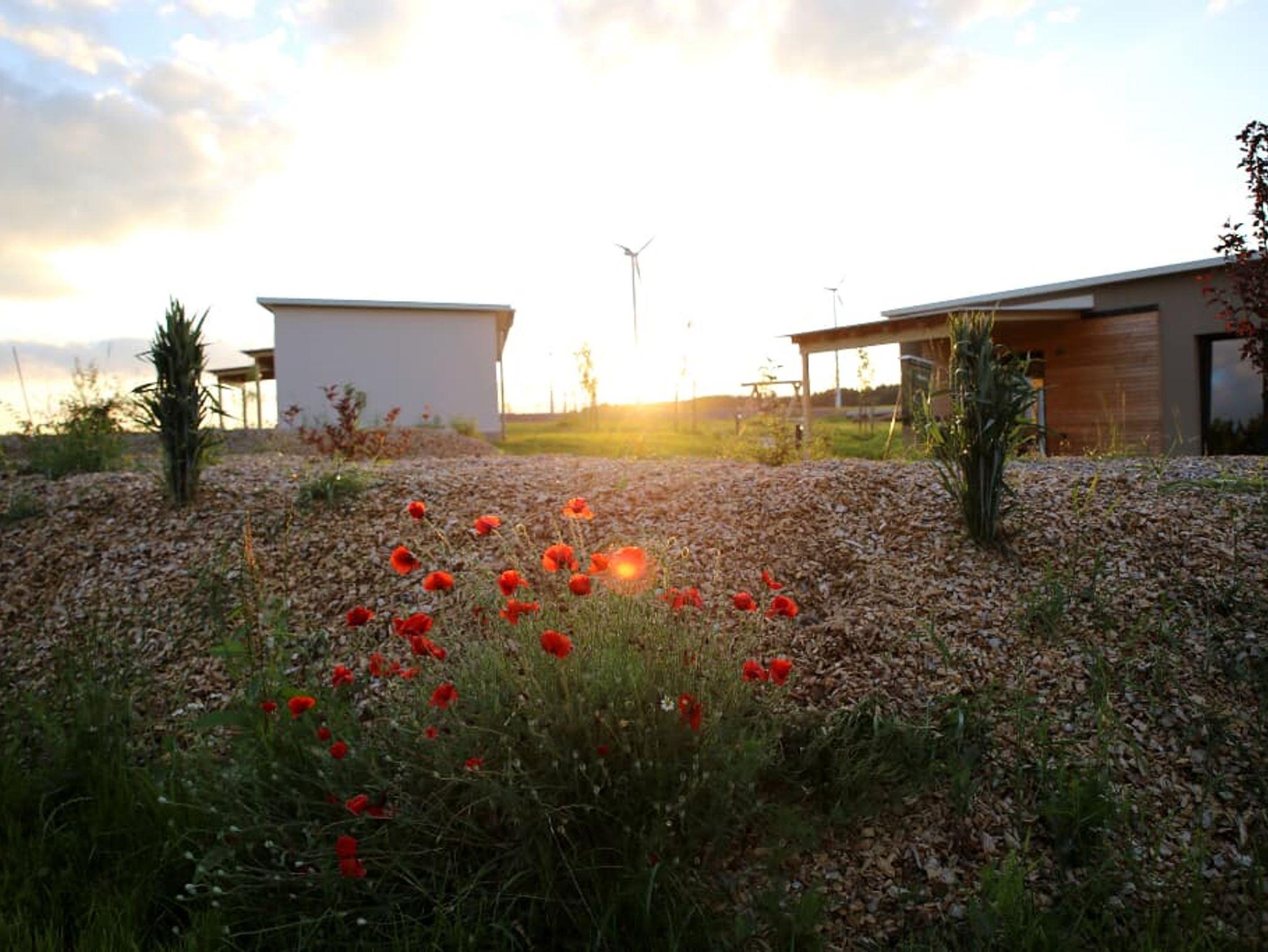 Mit unseren je ca. 44 m² großen einzeln stehenden Chalets mitten im Grünen haben wir ein Areal geschaffen, in dem Sie Auszeit nehmen können, Einblick nehmen können in ländliches Leben, aktiv sein können, eintauchen können in eine Oase für die Seele. Sie entscheiden, ob Sie für sich alleine bleiben wollen oder in Gemeinschaft mit uns und den anderen Gästen aktiv werden. In den 3 identisch aufgebauten Übernachtungschalets befindet sich jeweils ein großes Schlafzimmer für 2 Personen und ein kleineres für 2 Kinder oder einen Erwachsenen. Im Wohn/Essbereich gibt es zudem ein Schlafsofa. Eine kleine, aber komplett ausgestattete Küche inclusive Geschirrspüler und großem Kühlschrank lädt zum Kochen und Genießen ein. Im Duschraum liegen Handtücher und ein Fön für Sie bereit. Eine überdachte Terrasse lädt zum Verweilen an der frischen Luft ein. Die Terrassen sind von den anderen Chalets aus nicht einsehbar. Areal und Chalets sind ebenerdig angelegt und auch für ältere Menschen gut begehbar. Selbstverständlich verfügen die Chalets über WLAN. Wenn sie möchten bieten wir Ihnen morgens ein Frühstück in unserem Seminar-Chalet mit Gemeinschaftsraum, großer Terrasse und Profiküche.