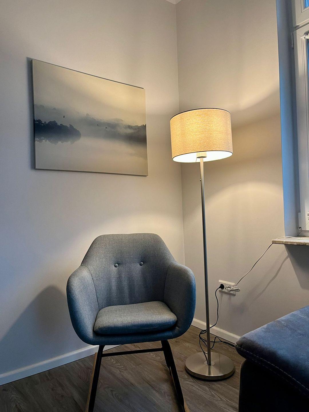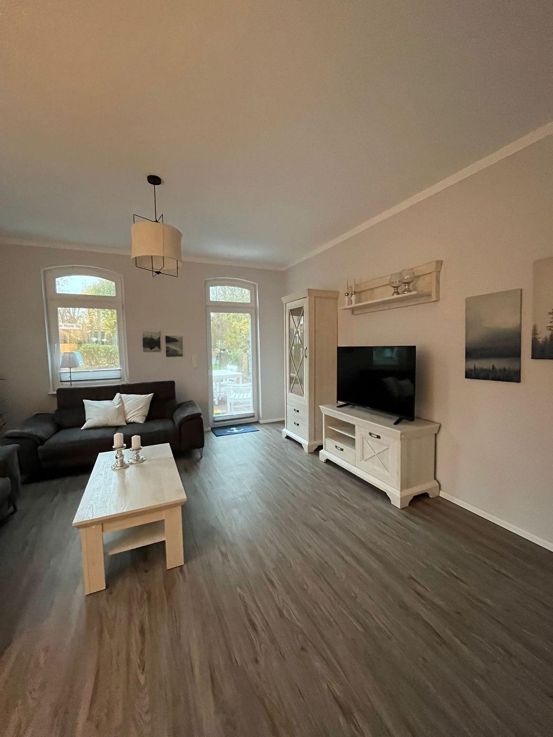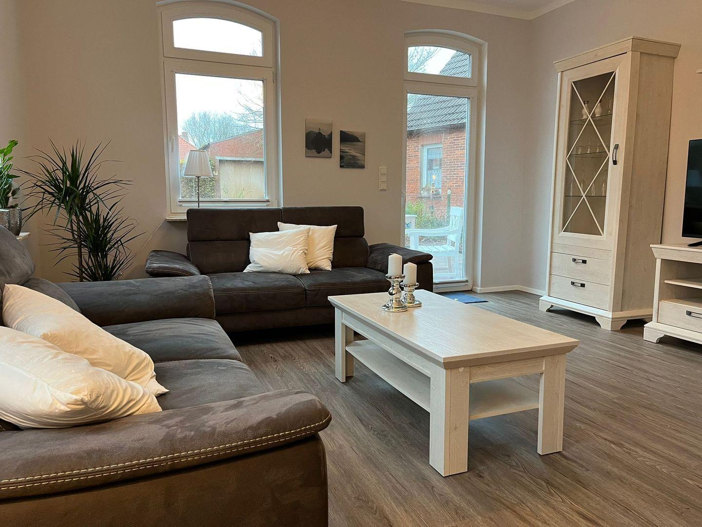 Moin und herzlich willkommen in der schönen Erdgeschoßwohnung Tomma in Amei´s Huuske. Das Haus wurde Ende 2021 komplett saniert. Vom Flur gelangen Sie in den großzügigen Wohnbereich. Entspannen Sie auf der gemütlichen Couch. Ein Smart-TV sorgt für Unterhaltung.