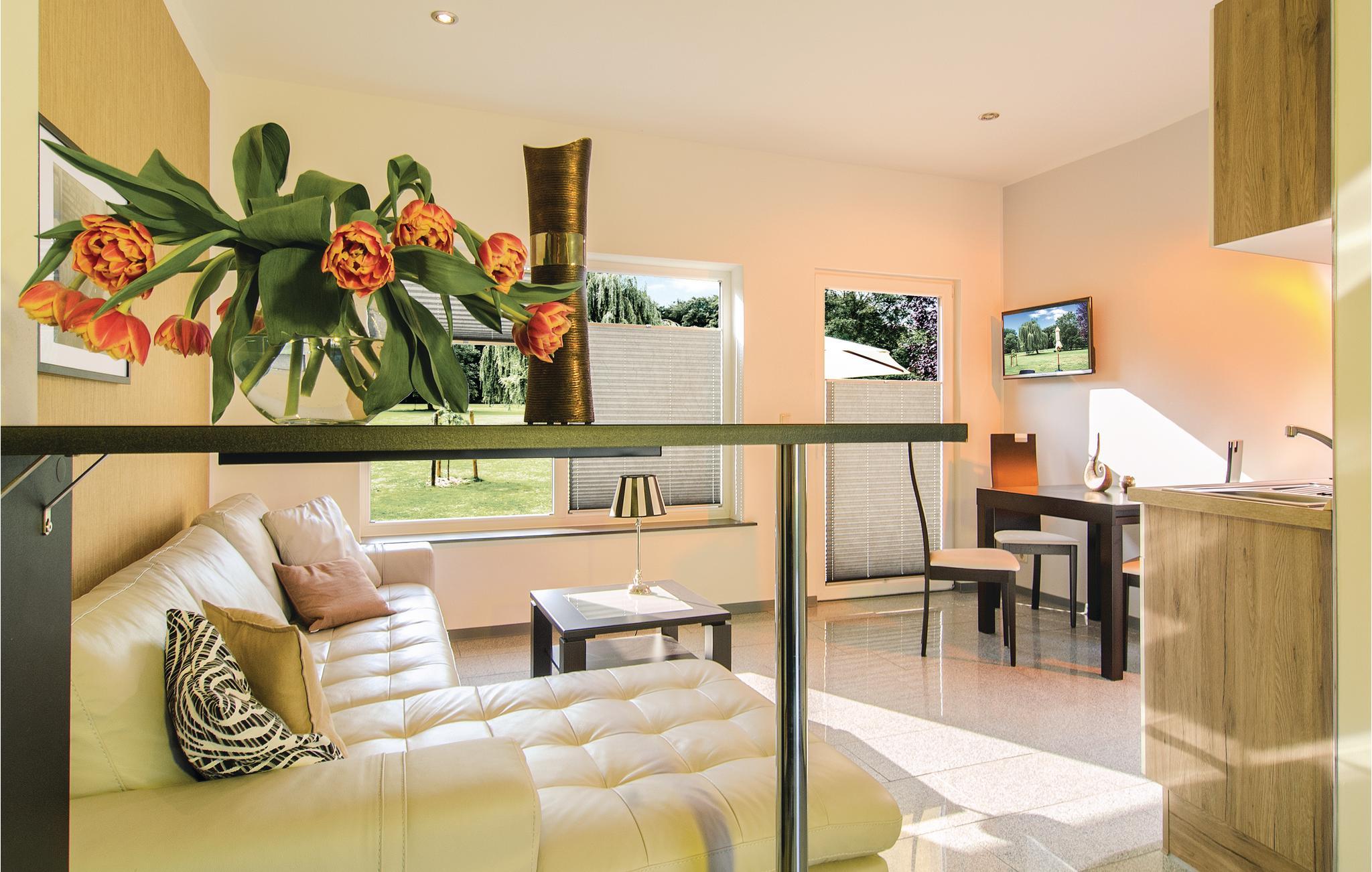 I en stor solrig lysning i skoven ligger ferieparken Pinower See. Allerede når I forlader motorvejen, på den korte strækning til jeres feriebolig, begynder I at føle roen på vejen gennem skoven. I det naturskønne område ligger jeres feriehus som en del af flere rækkehuse. Grunden er komplet indhegnet og I kan lade børnene lege med god samvittighed.