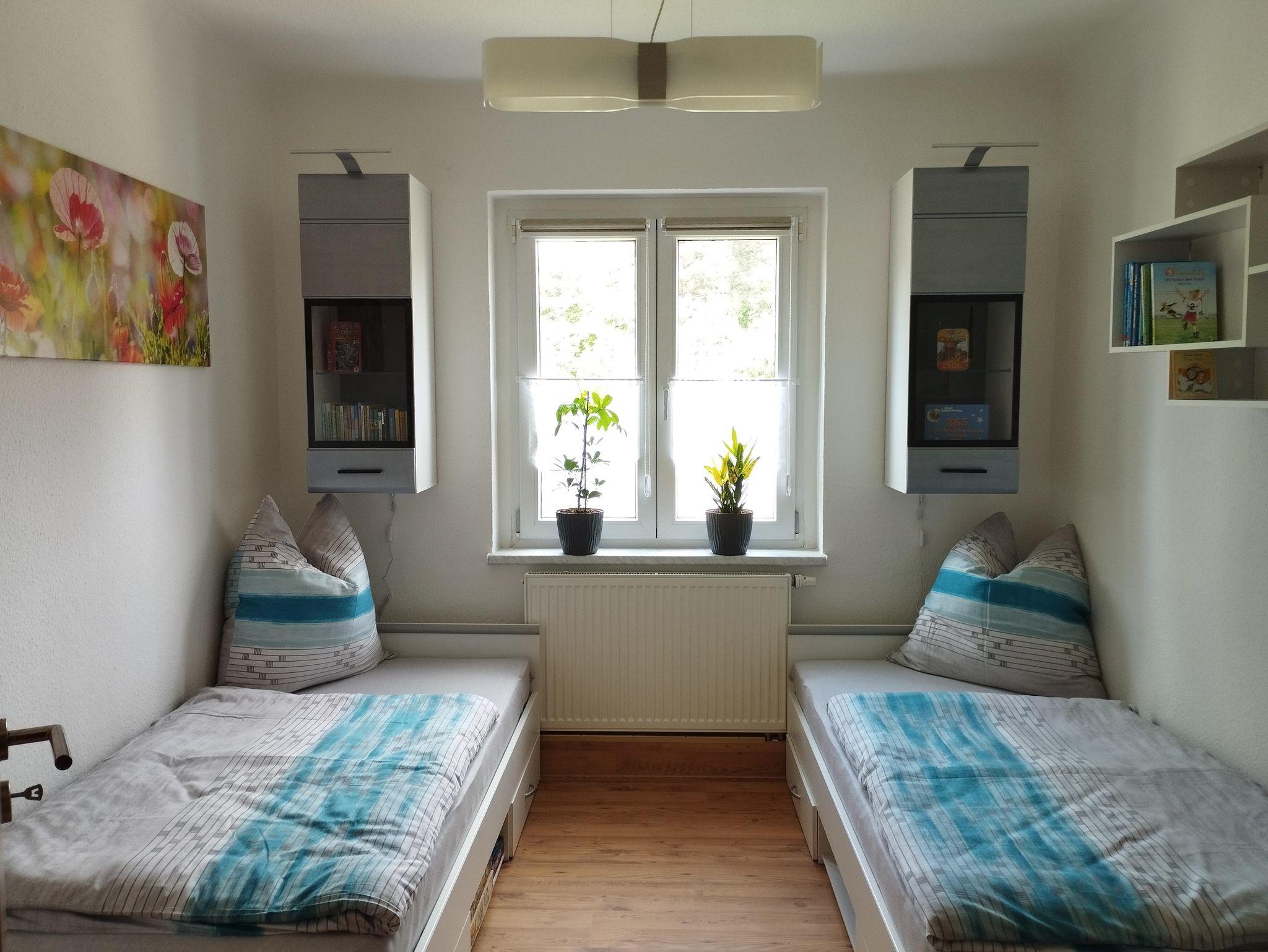 Unsere Nichtraucher-Ferienwohnung liegt im Erdgeschoss unseres Hauses und ist für 2 bis 4 Personen bestens geeignet. Sie verfügt über zwei separate Schlafräume (1x Doppelbett, 1x 2 Einzelbetten) mit ausreichend Stauraum und Verdunklungsmöglichkeit.