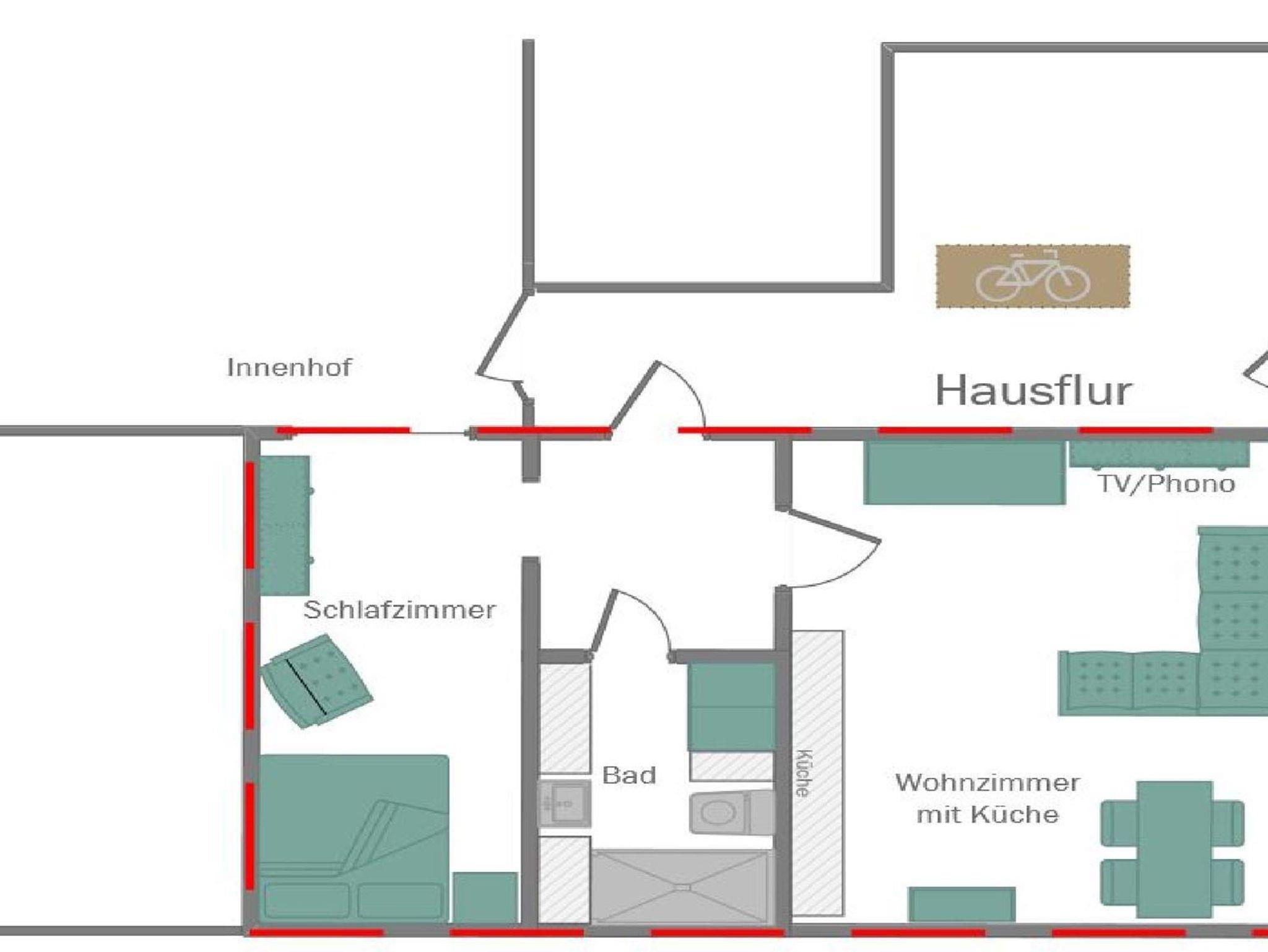 Die Ferienwohnung liegt im Erdgeschoss und ist komfortable 54 qm groß.