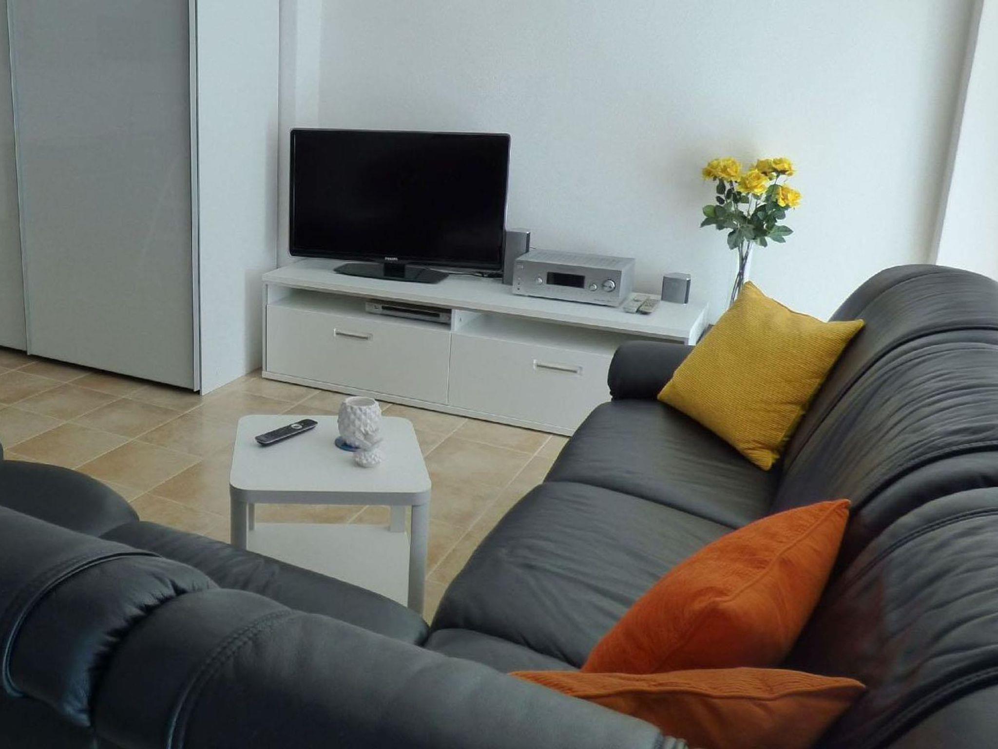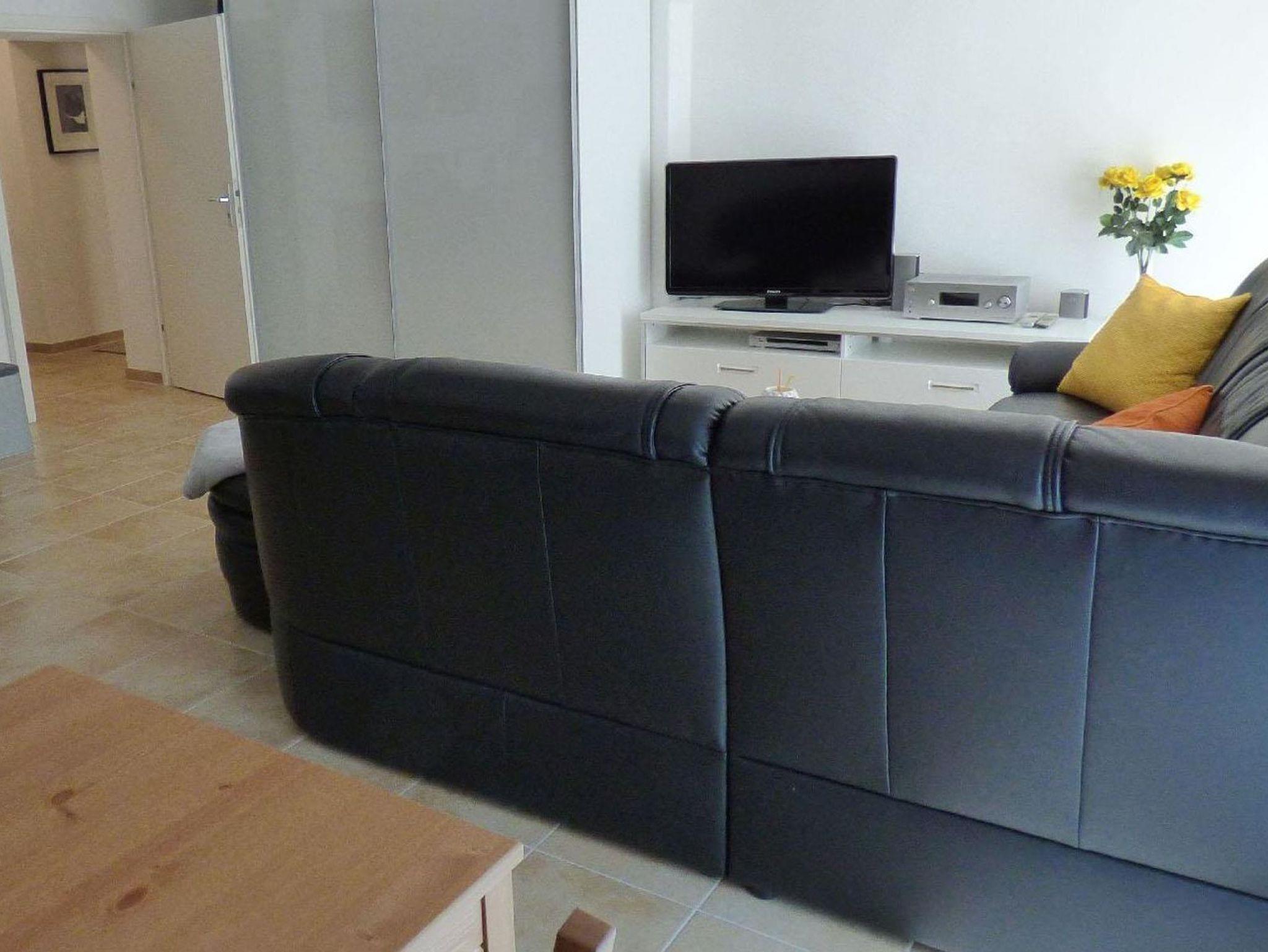 Sie können sich auf einen großzügigen Wohnbereich mit offener Küche und Essbereich für 4 Personen freuen, sowie auf einen großen 42 Zoll Fernseher und kostenfreies WLAN.