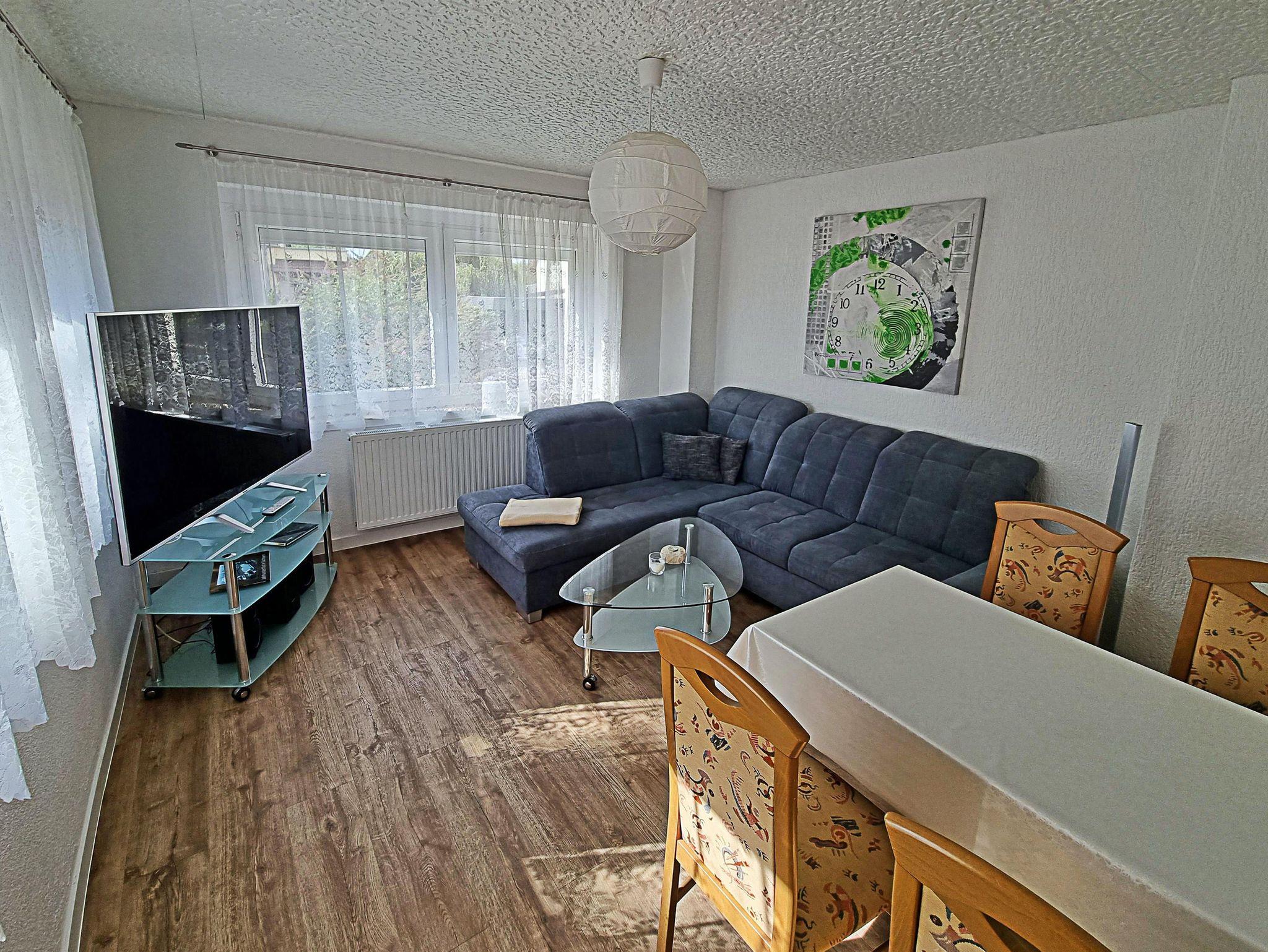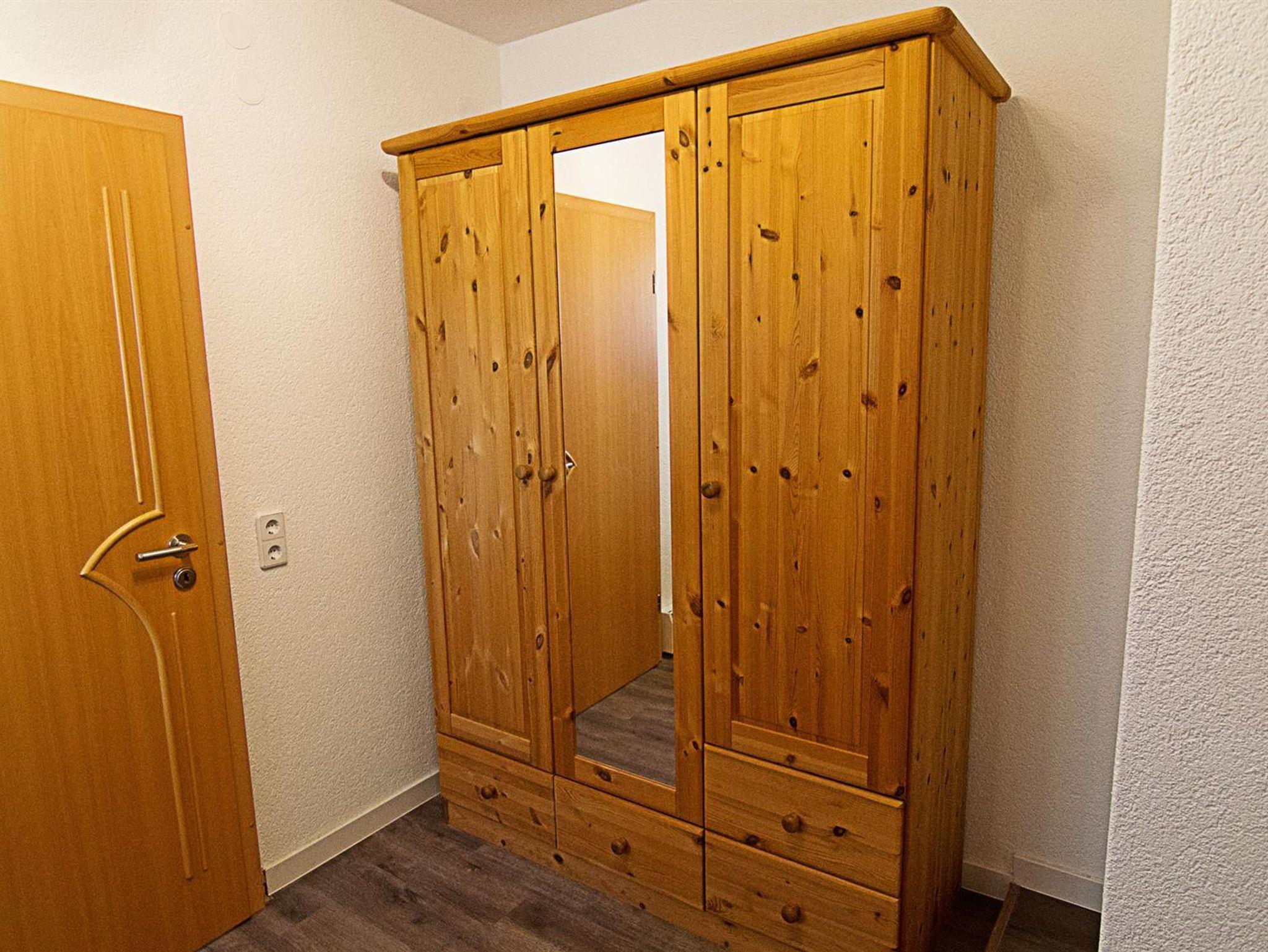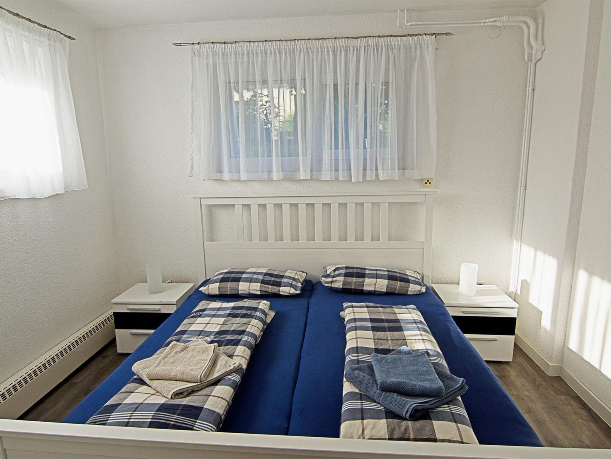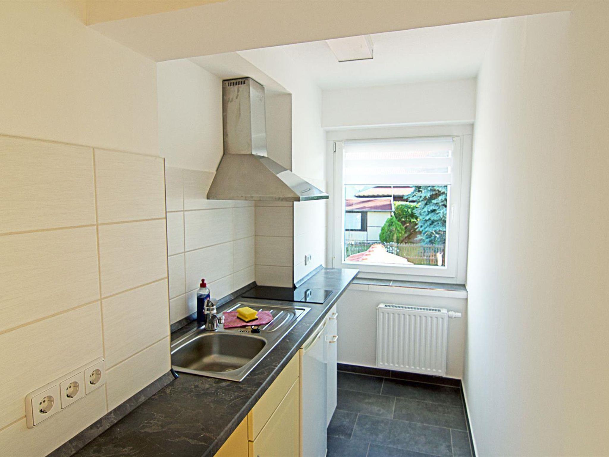 Die Wohnung verfügt über einen Wohnraum mit gemütlicher Sitzgruppe, TV und Essplatz, ein Schlafzimmer mit Doppelbett sowie einen Schlafraum als Durchgangszimmer mit einem Einzelbett. Die kleine separate Küche verfügt über ein 2er-Ceranfeld, Kühlschrank und ein Kombigerät aus Backofen und Mikrowelle.