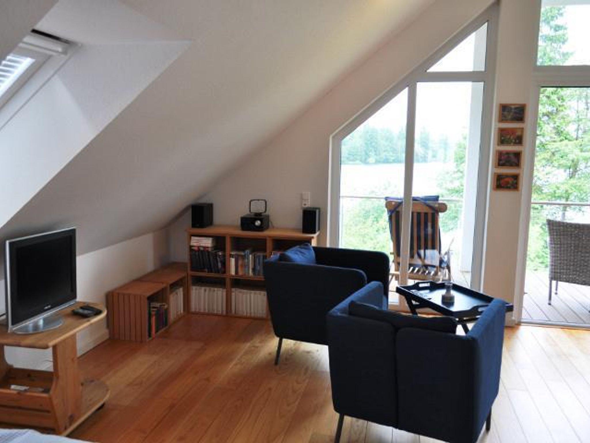 Das Ferienhaus verfügt über eine Wohn-Esszimmer mit Kaminofen, eine modern eingerichtete und gut ausgestatte Küche, 2 Schlafzimmer, 2 Badezimmer mit Dusche/WC und Badewanne. Eine große Terrasse zur Seeseite mit Gartenmöbeln und eigenen Seezugang mit Steg und Ruderboot.
