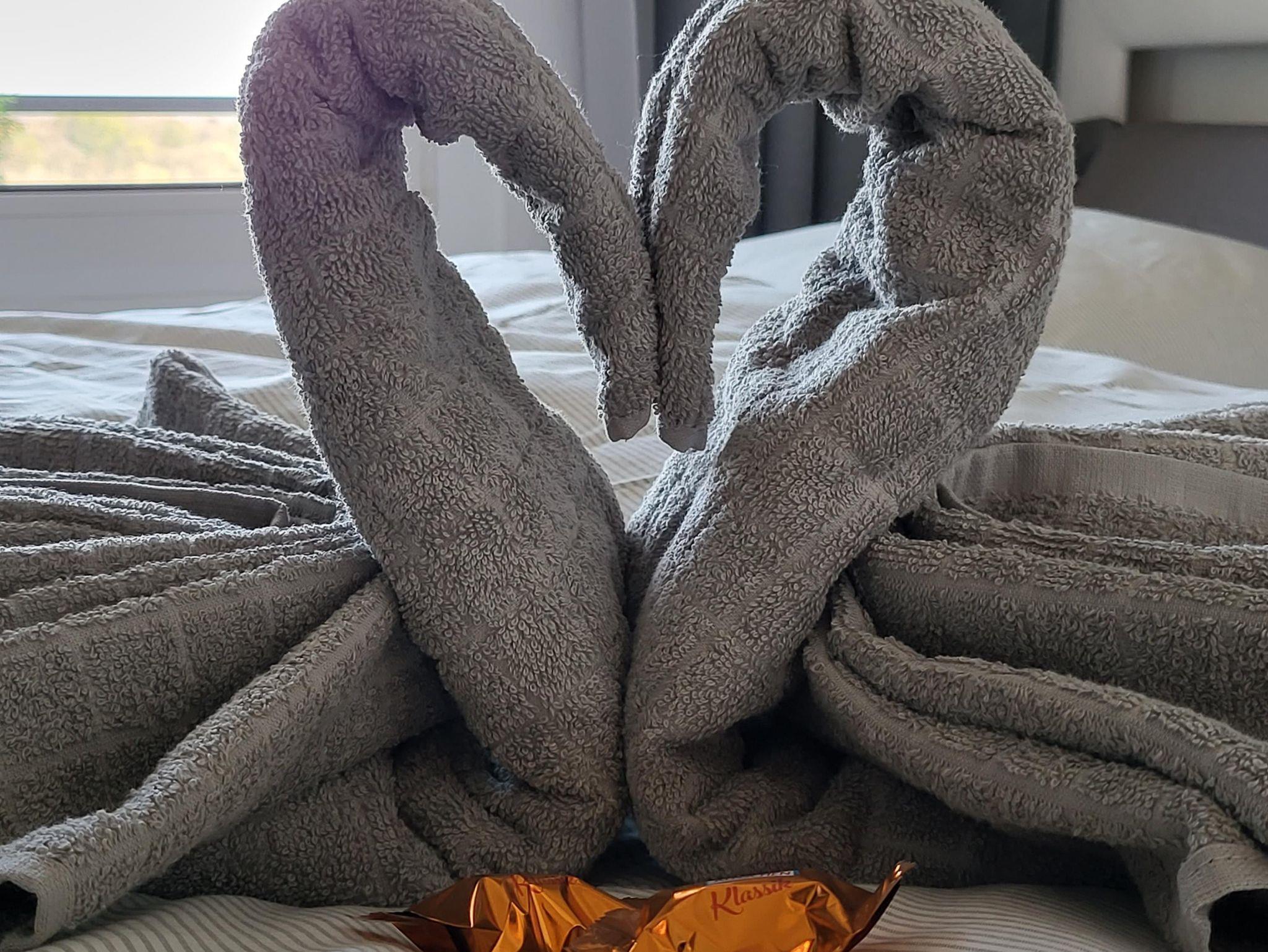 Zur Abreise legen Sie bitte alle benutzten Handtücher, Bademäntel usw. einfach in den Flur. Betten ziehen wir ab.