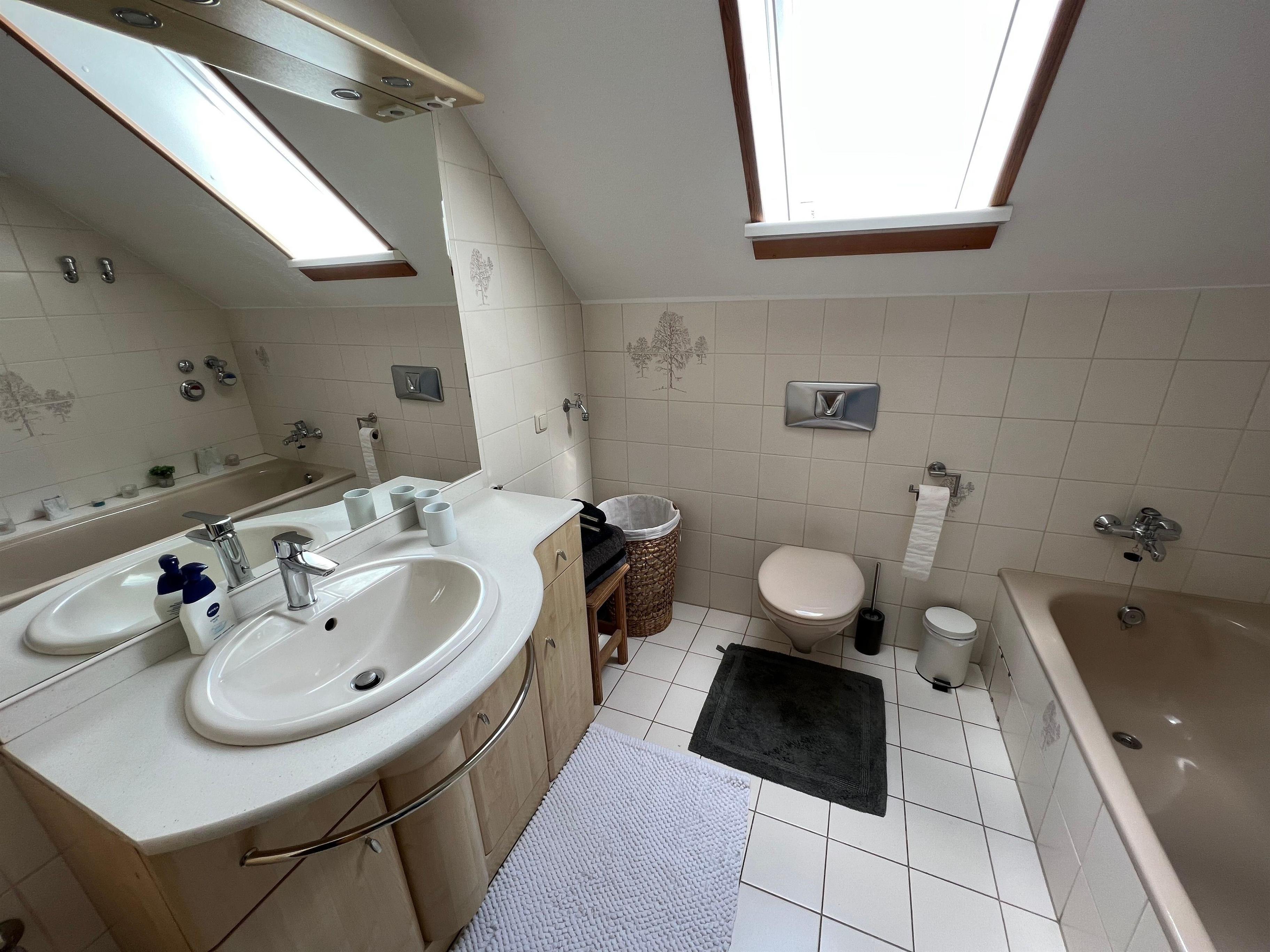 Duschbad und separater Badewanne, einem Wohnzimmer mit Eßtischgruppe, Ledergarnitur,