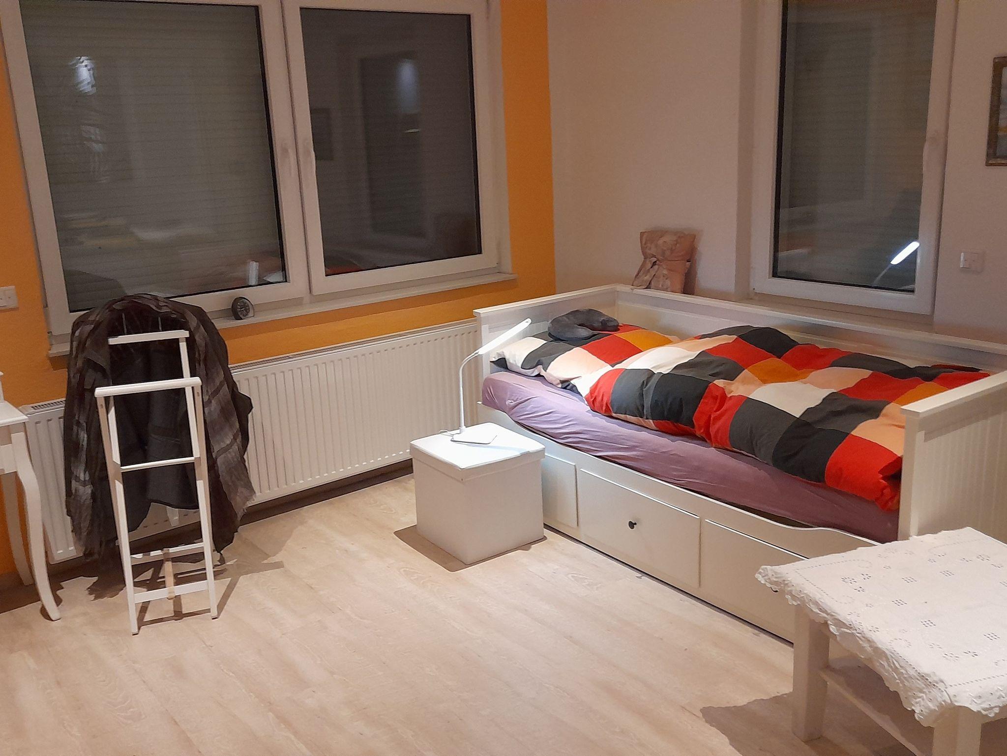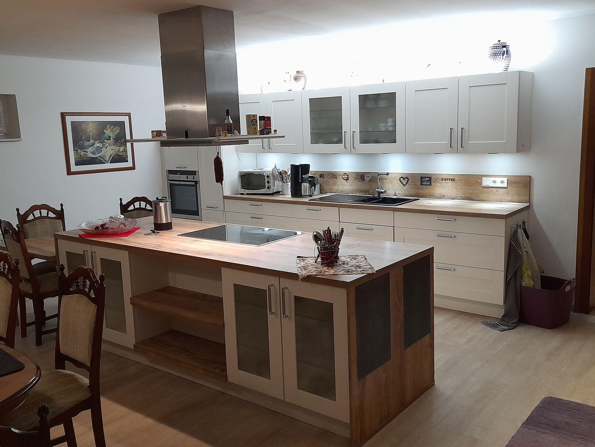- 1 vollausgestattete Wohnküche (optionale Aufbettung), 1 SZ mit Doppelbett, 1 Arbeitszimmer mit Einzelbett und 1 Kinderzimmer mit ausziehbarem Doppelbett Bett