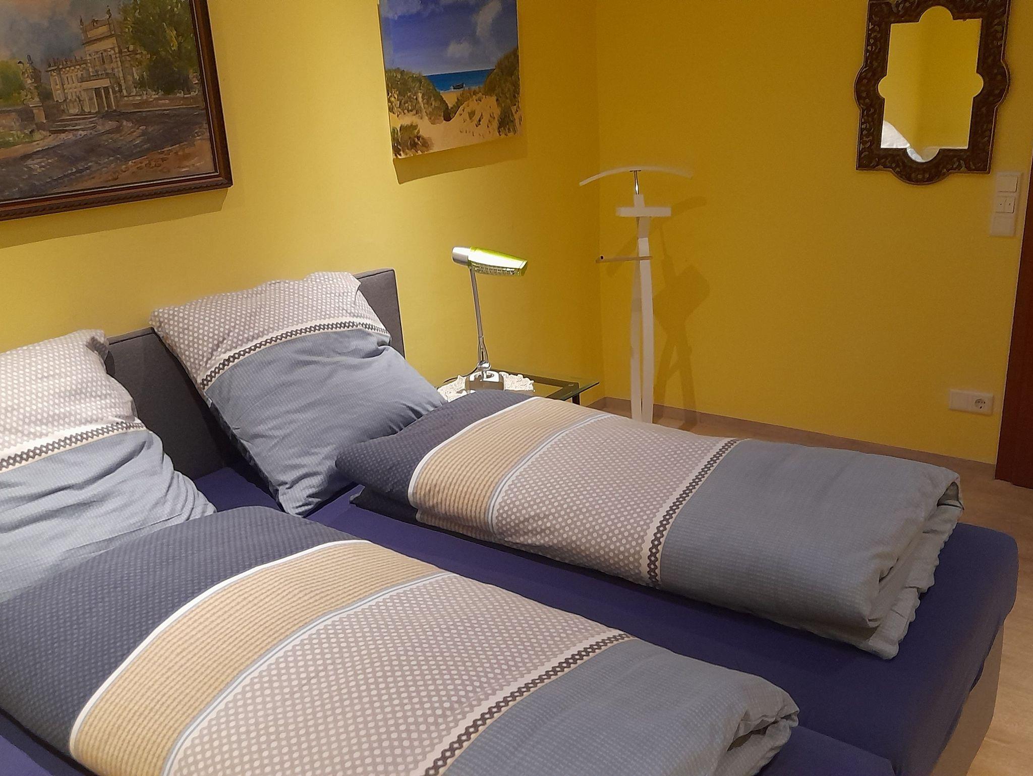 - 1 vollausgestattete Wohnküche (optionale Aufbettung), 1 SZ mit Doppelbett, 1 SZ/KZ mit ausziehbaren Doppelbett max. Breite 1,60 m, 1 Arbeitszimmer mit Einzelbett