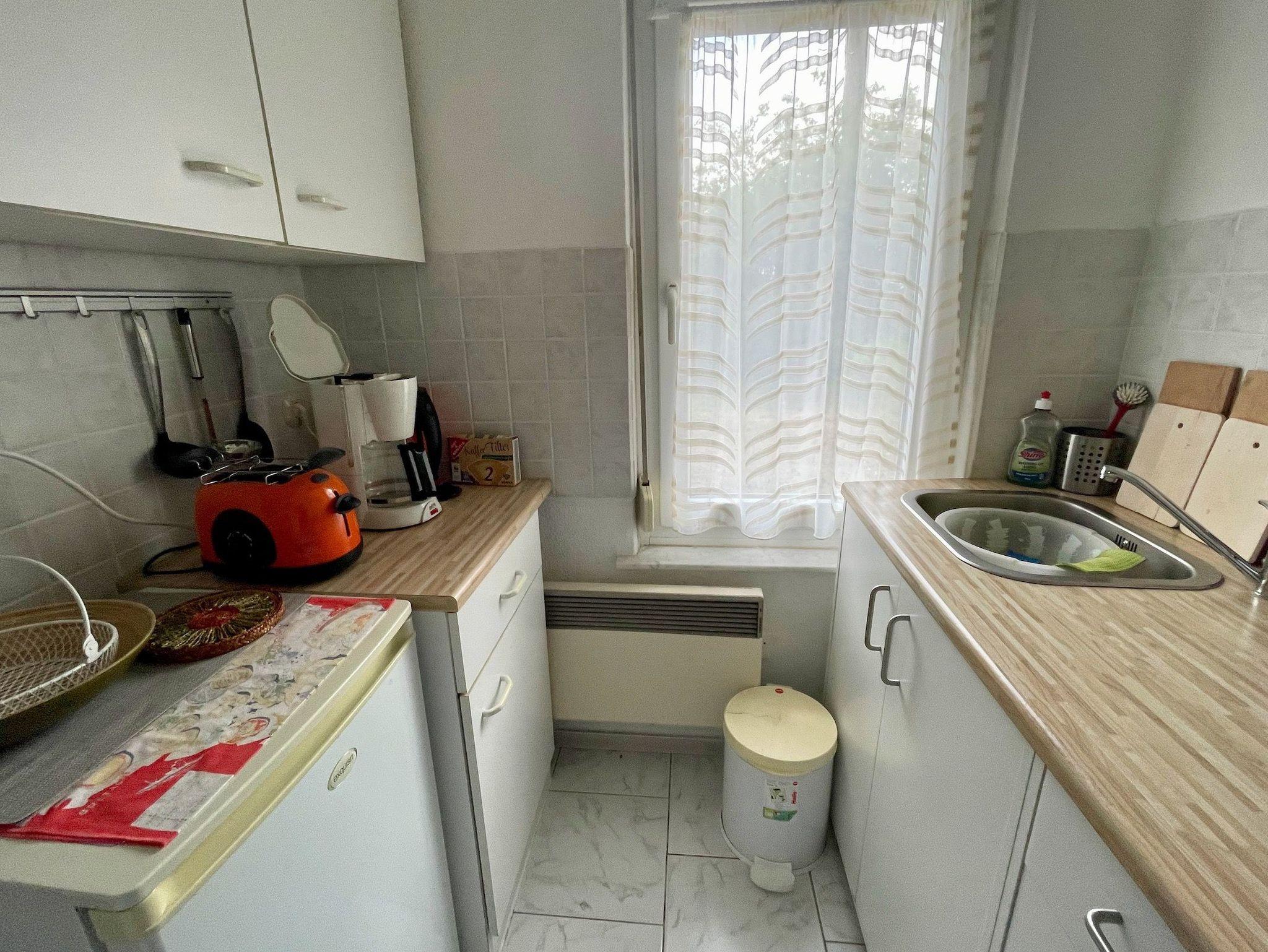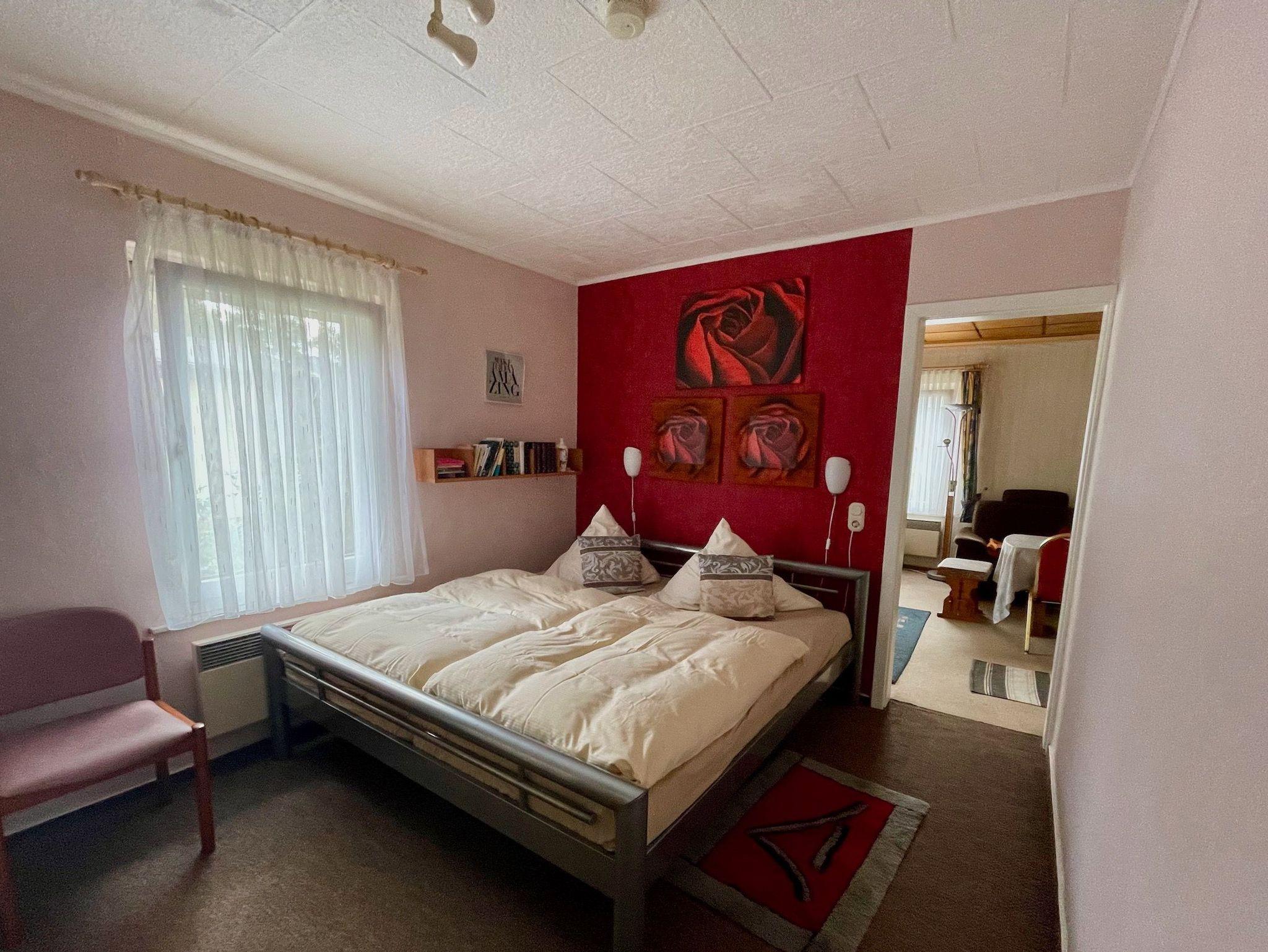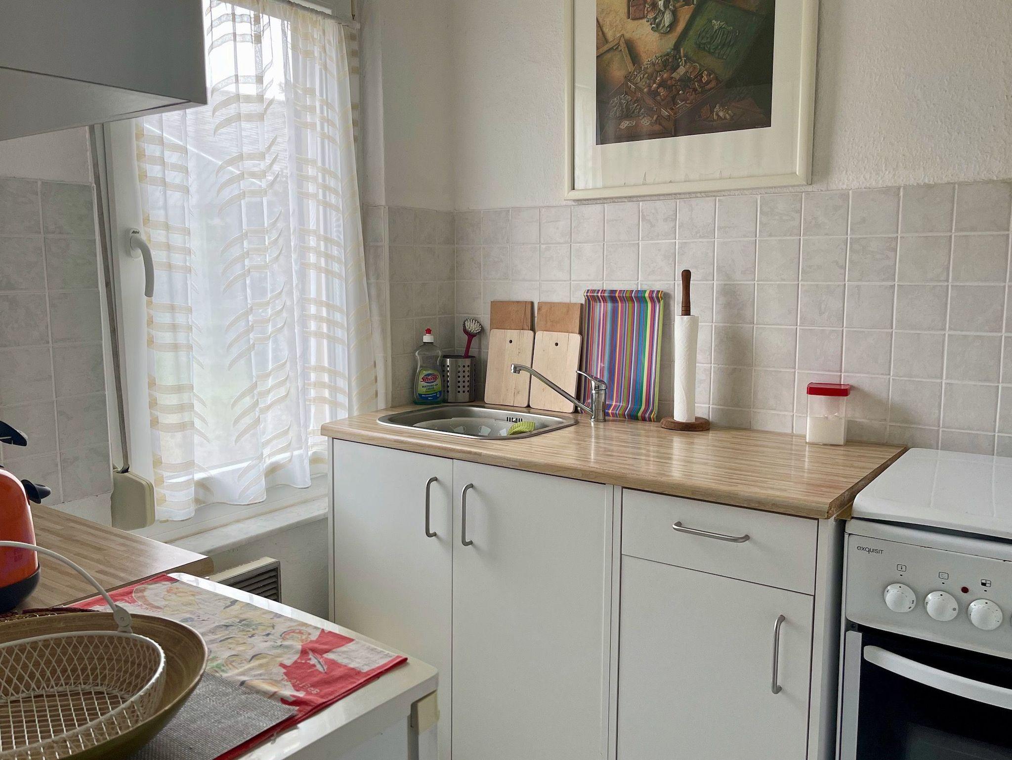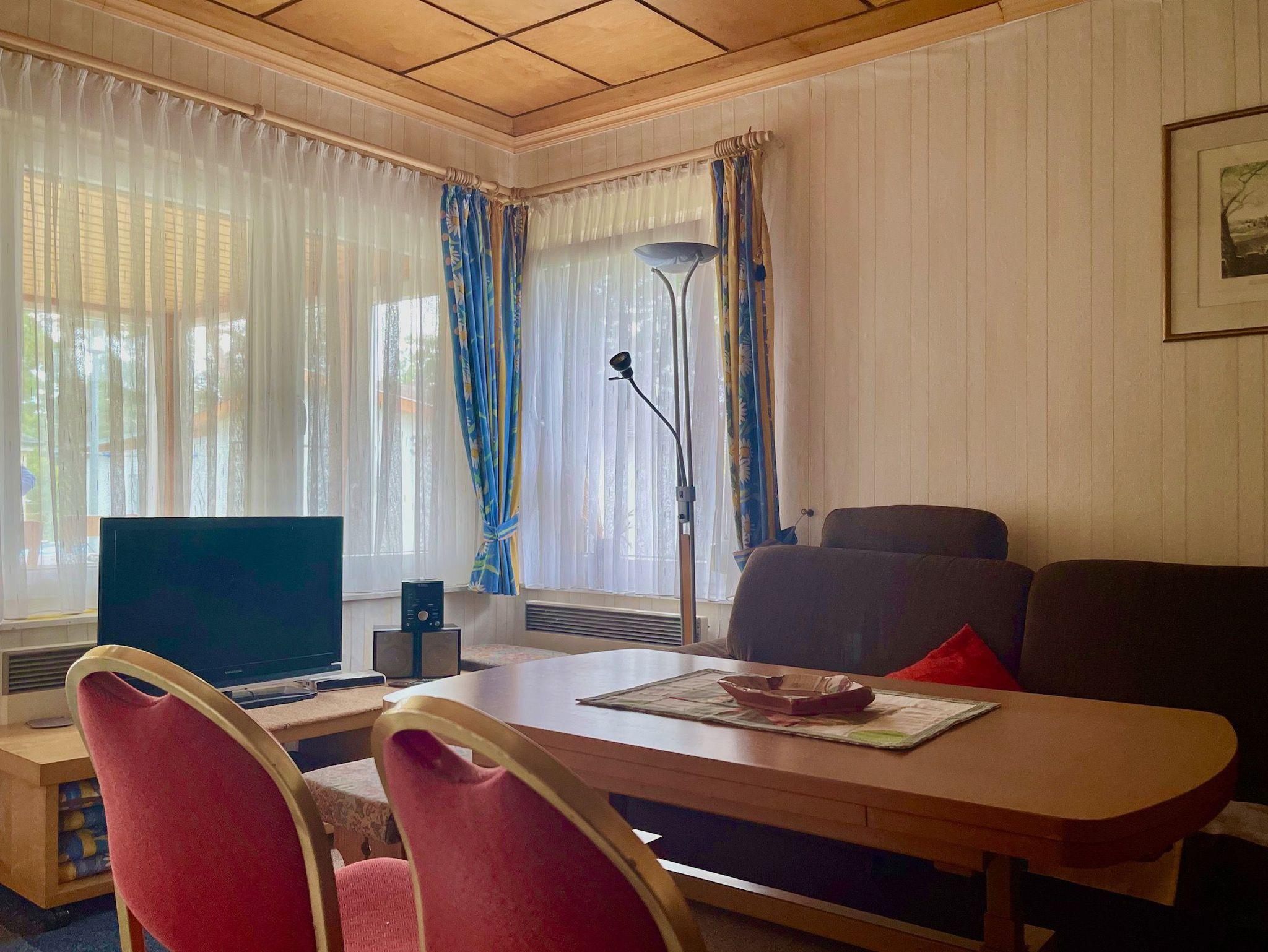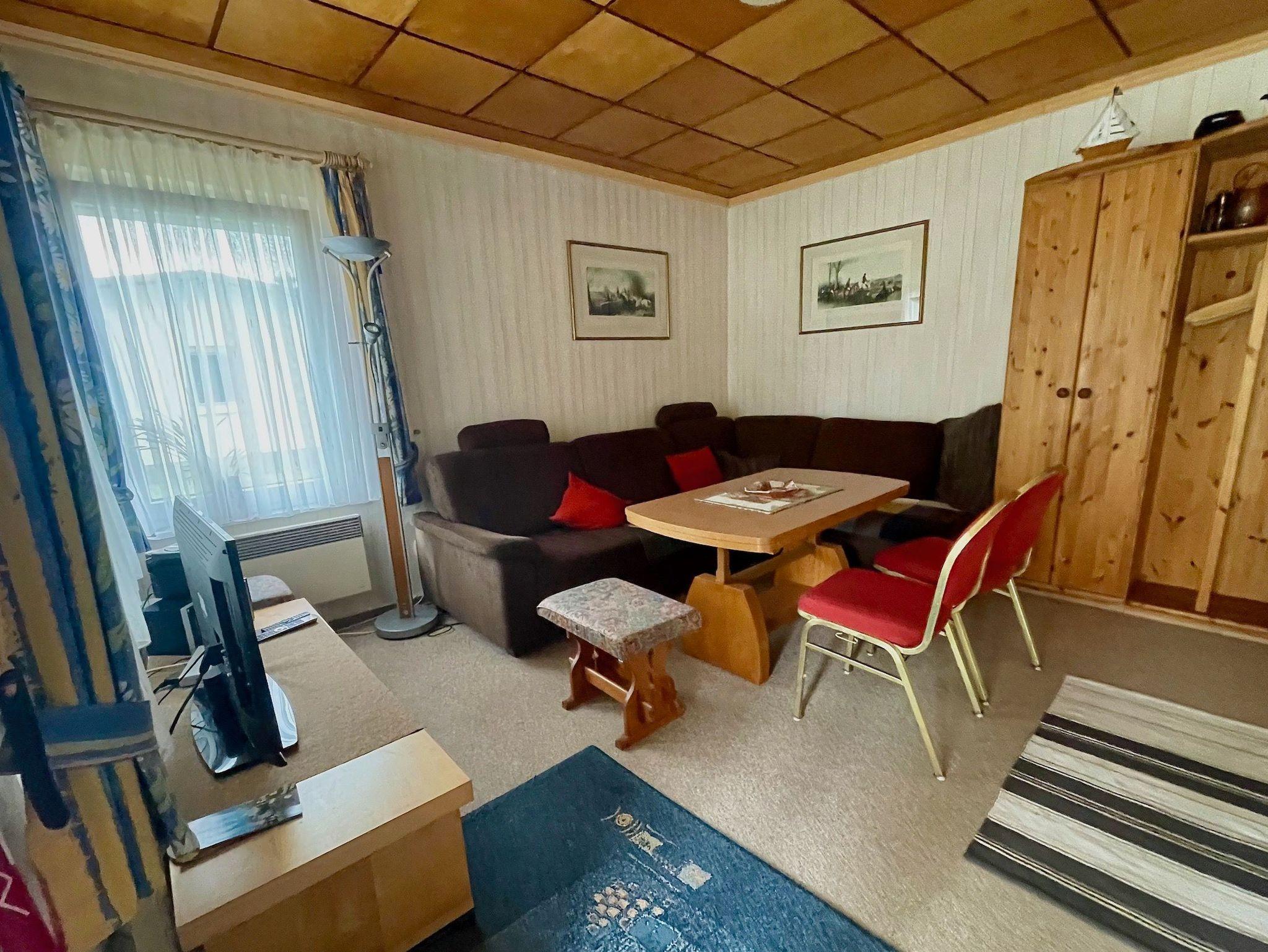 Es erwartet Sie eine kleine Küche, ein Schlafzimmer mit Doppelbett und ein Wohnraum mit Schlafcouch und TV. Hier ist eine Aufbettung möglich.