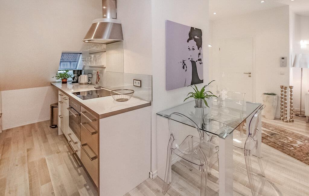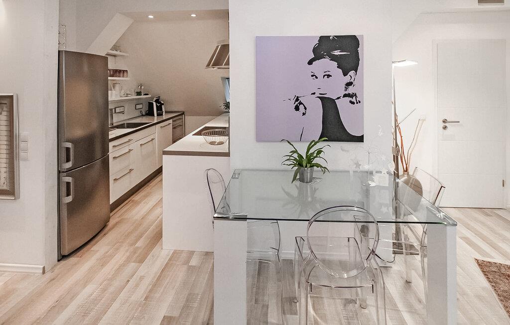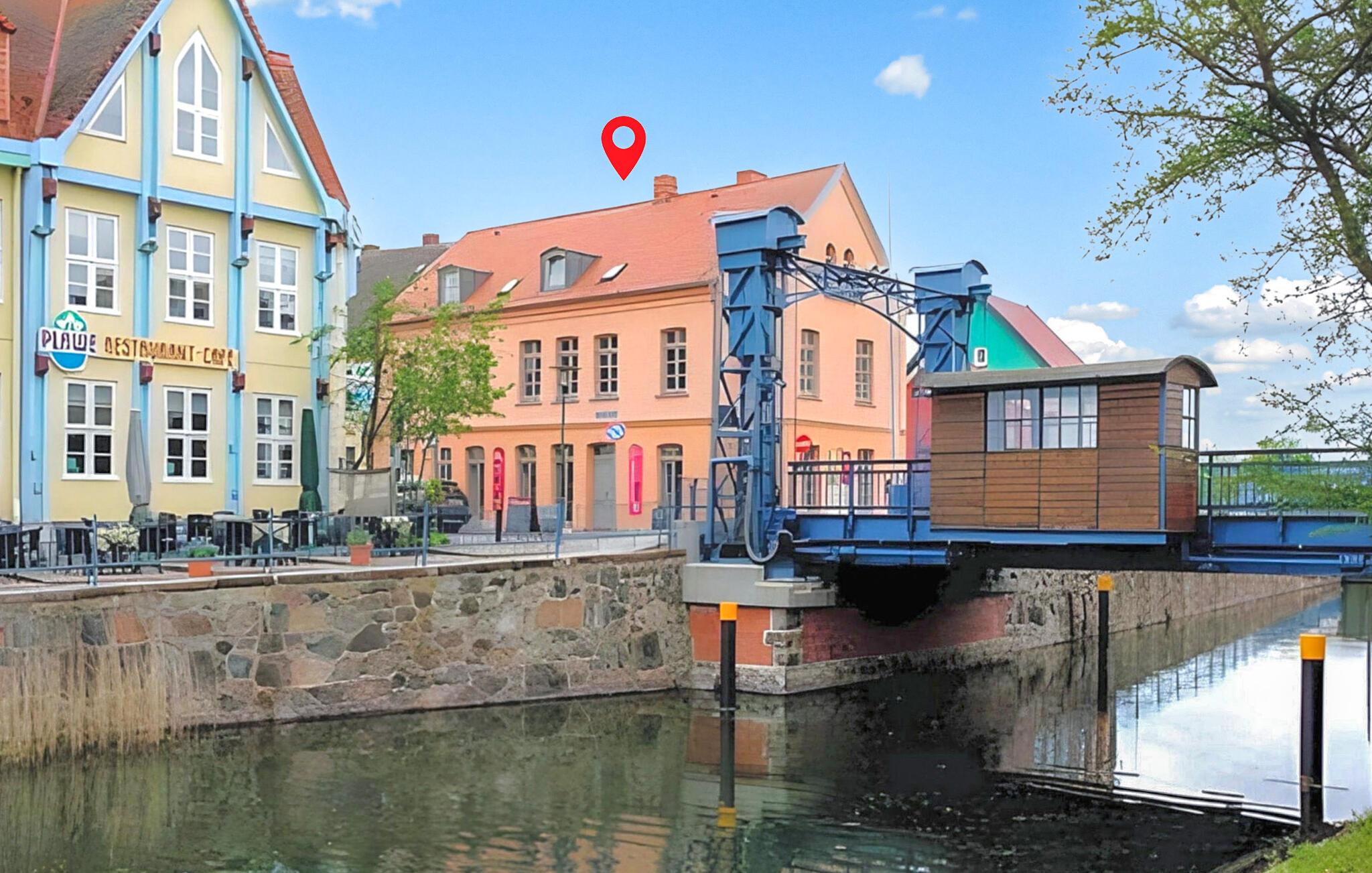 Ferielejligheden ligger på øverste etage i en bolig- og erhvervsbygning i Plaus gamle bydel, direkte ved Elde. Ejeren driver en isbar i stueetagen. Stranden ved Plauer See ligger cirka 2 km væk. Den komfortable og højkvalitets indretning opfylder høje krav. Lejligheden har kombineret stue/soveplads (polstrede møbler, dobbeltseng, spisebord, LED TV, hi-fi), komplet tekøkken med el-komfur, opvaskemaskine, køle/fryseskab, mikroovn, diverse køkkenmaskiner, badeværelse med bruser / Toilet, WiFi, centralvarme. Offentlige parkeringsmuligheder (mod betaling) er tilgængelige i umiddelbar nærhed (gratis, ca. 800 m). Udendørs opbevaring af cykler bag huset. Den samlede pris inkluderer slutrengøring, sengelinned, håndklæder, vand og energiforbrug. Betales på stedet: turistskat, parkeringsafgift. Det klimatiske kursted Plau am See er en lille by i Mecklenburg Lake District med en lang tradition som feriested. Med sine 38,4 km² er søen af samme navn den tredjestørste i Mecklenburg-Vorpommern. Badestrande, båd- og cykeludlejning, dykker- og sejlerskoler, klatreparker, passagerbådsture og gode fiskemuligheder ligger i byen. Der er også en gammel by, der er værd at se, med talrige restauranter, caféer og indkøbsmuligheder. En smuk promenade løber langs bredden af Elde. Leje af motorbåd efter aftale.