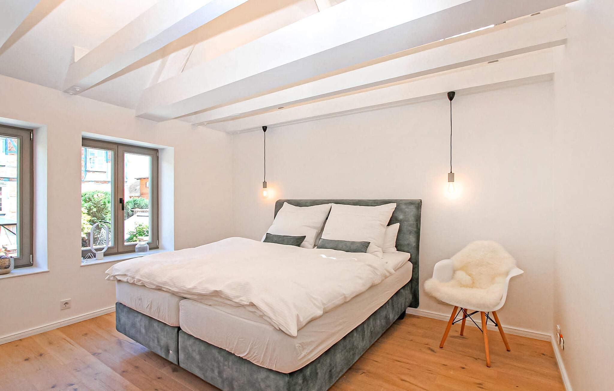 Den historiske bygning blev omfattende renoveret i 2021 og indrettet i en moderne, minimalistisk stil. Udstyret af høj kvalitet opfylder høje krav. Første indflytning i juli 2021. Stueetagen har åben planløsning. Der er to opholdsområder her (polstrede møbler, siddepladser, smart-tv), et topmoderne køkken (inklusive en elektrisk kogeplade med integreret Bora emhætte, ovn, internetaktiveret køleskab med isterningdispenser, stor spisestue bord, diverse køkkenmaskiner), et lille gæstetoilet, 1 soveværelse med dobbeltseng (gennemgangsværelse til badeværelset) og et badeværelse med åben bruseniche og vaskemaskine. På øverste etage er der yderligere to soveværelser (hver med dobbeltseng, fladskærms-tv) og et badeværelse med fritstående badekar, åben bruser og LED-spejl med integreret kosmetikspejl. En barneseng og en høj stol er til rådighed for små børn. Der kan tilføjes ekstra gæstesenge til større børn op til 10 år.