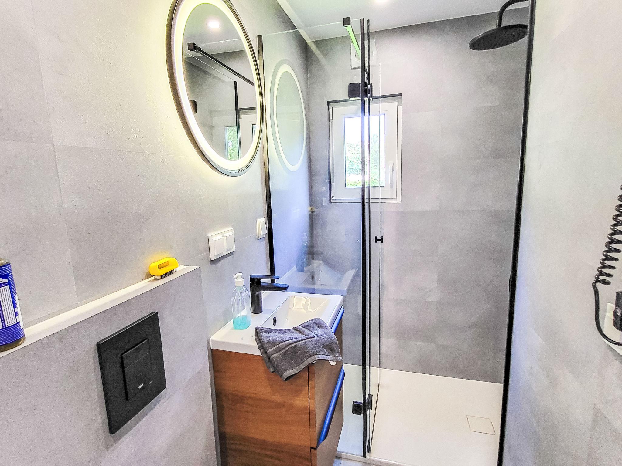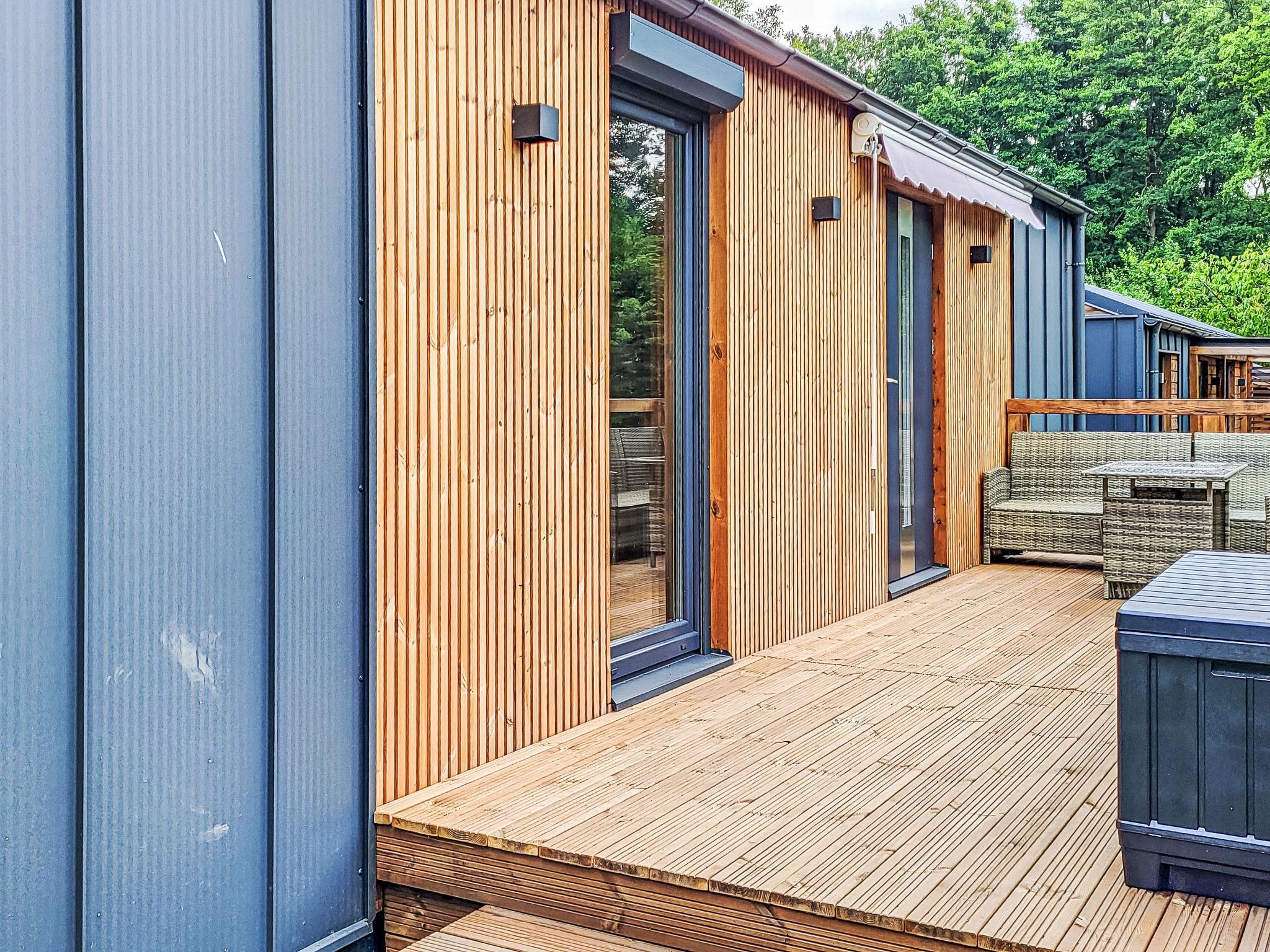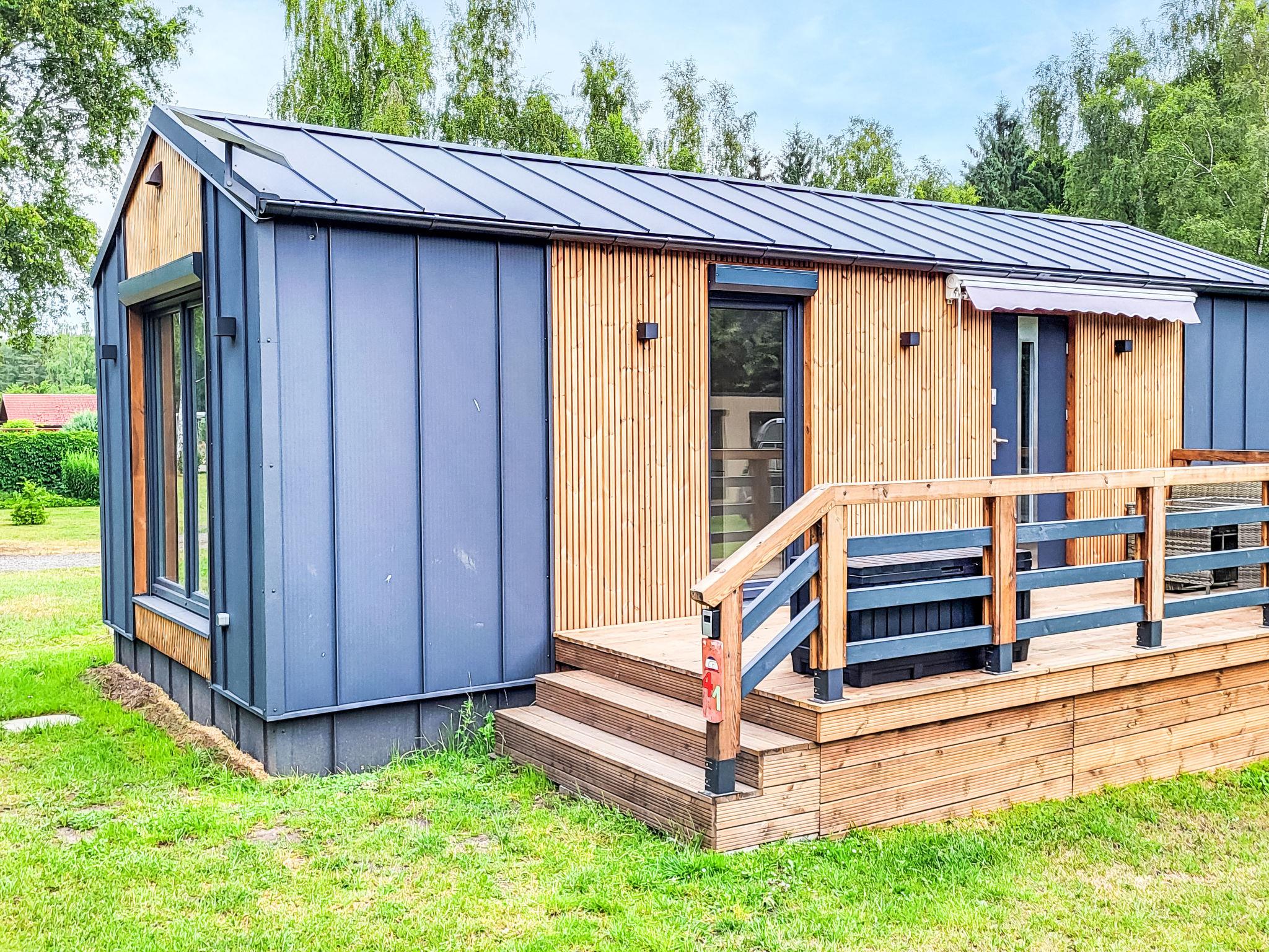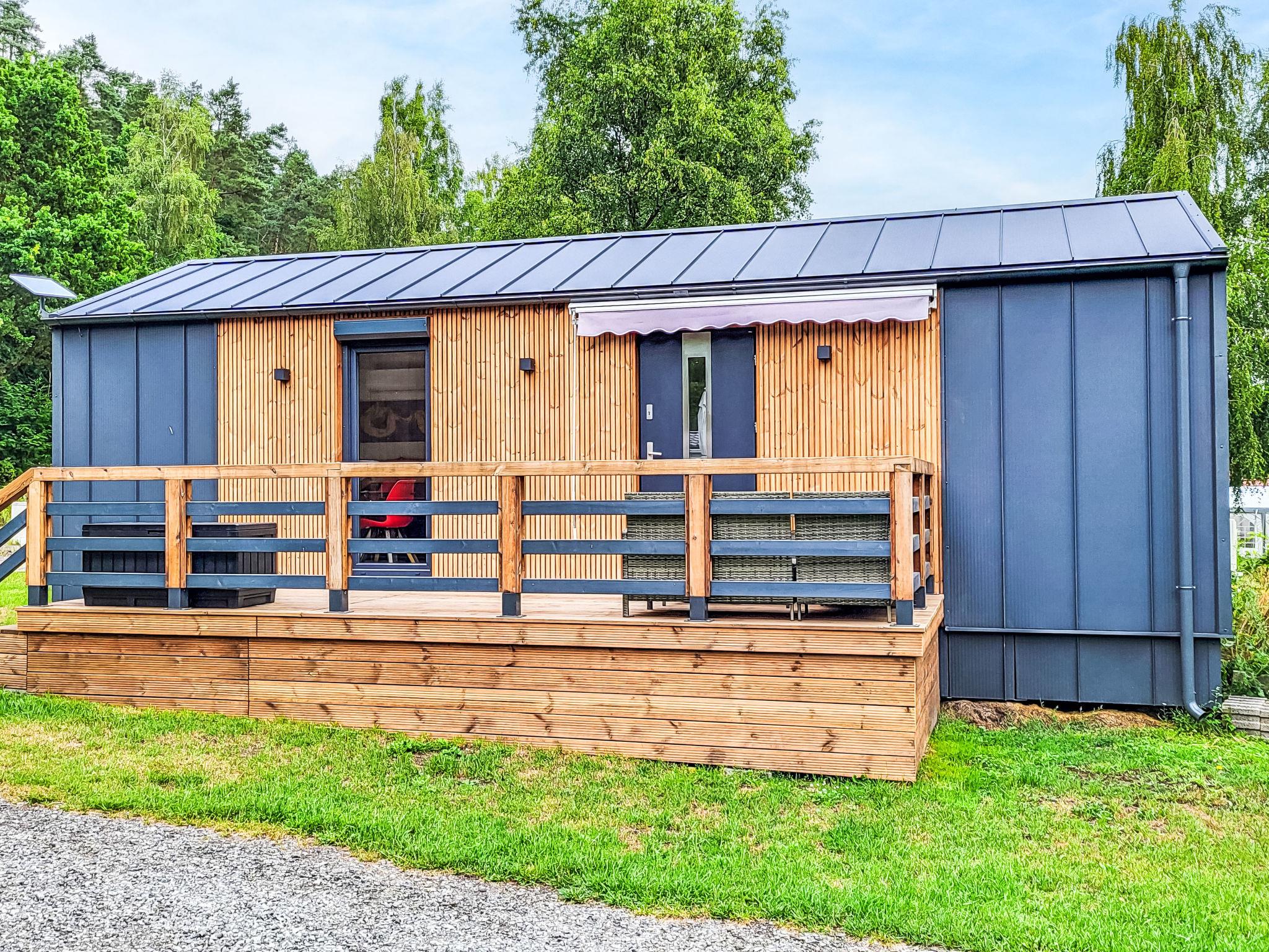 "Haus 41 Fiete", 3-room mobile home. Modern and tasteful furnishings: living/sleeping room with 1 double sofabed (180 cm, length 200 cm), satellite TV. Exit to the terrace. 1 room with 1 bed (90 cm, length 200 cm). 1 room with 1 double bed (160 cm, length 200 cm), satellite TV. Open kitchen (oven, dishwasher, 4 induction hot plates, toaster, kettle). Shower/WC. Heating. Terrace 12 m2. Very beautiful view of the forest. Facilities: Internet (WiFi). Parking at the house. Maximum 1 pet/ dog allowed.