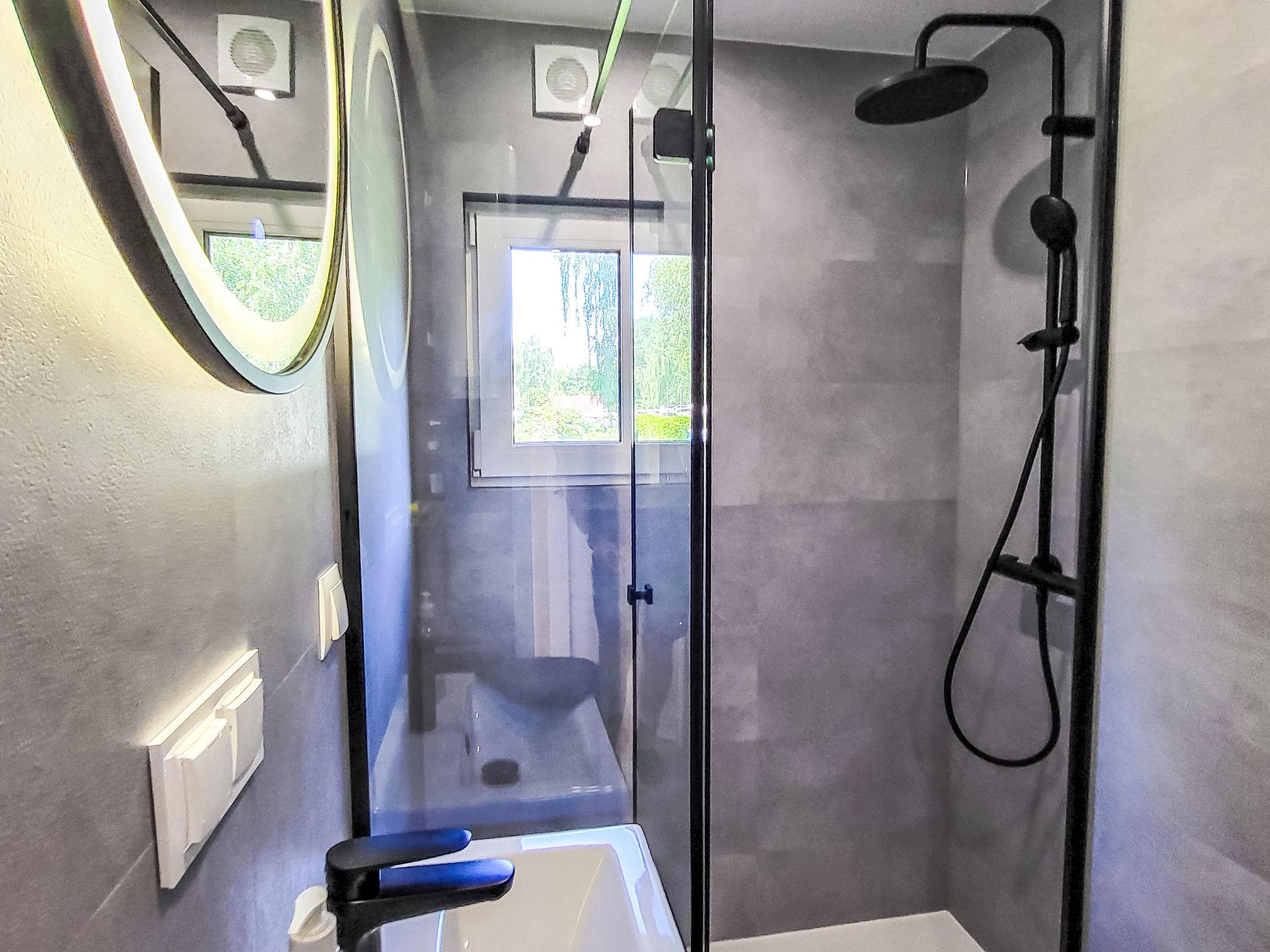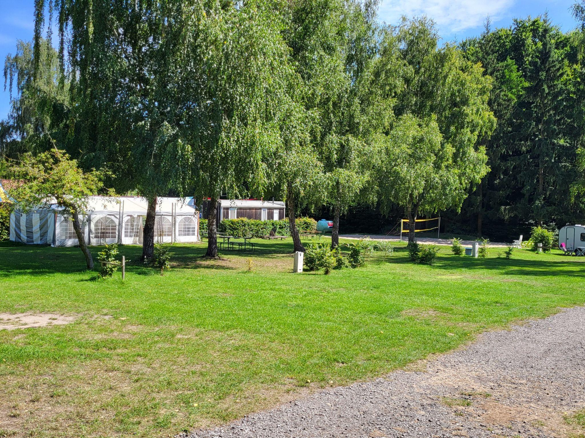 Bad Stuer 10 km from Plau am See: Modern mobile home, built in 1023, surrounded by trees and meadows. In a quiet, sunny position, 300 m from the lake, 300 m from the beach. For shared use: property 2 ha (fenced) with trees. Volleyball court, fireplace, children's playground (swing). In the complex: reception, bistro, WiFi, kiosk. Supermarket 10 km, restaurant, bar, pub garden 100 m, bus stop "Bad Stuer" 600 m, sandy beach, bathing lake 300 m. Sports harbour 400 m, golf course (73 hole) 25 km. Nearby attractions: Bärenwald 2 km. Well-known lakes can easily be reached: Plauer See 300 m, Fleesensee 15 km. Please note: Additional accommodations can be booked.