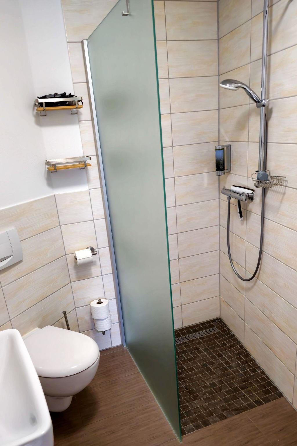 The flat is characterised by its well thought-out interior design. In the living and sleeping area, you will find a comfortable double bed that invites you to relax after a day of exploring. A TV is provided for your entertainment. The kitchenette is fully equipped and offers a 2-ring hob, a mini oven and a kettle to fulfil your culinary needs. In addition, the underfloor heating throughout the flat, together with a fan, ensures your comfort in every season.
