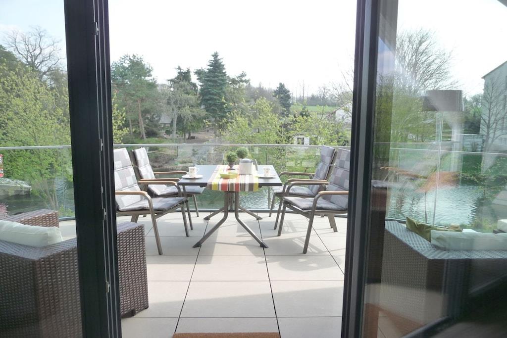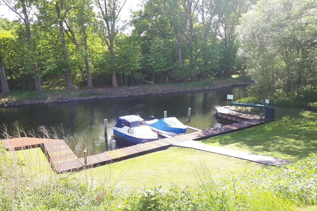 2023 met bootligplaats, dichtbij het centrum, rustig, hoogwaardig & charmant, 25 m² terras met uitzicht op het water, 2 slaapkamers, 3 TV's, kano, internet + parkeerplaats