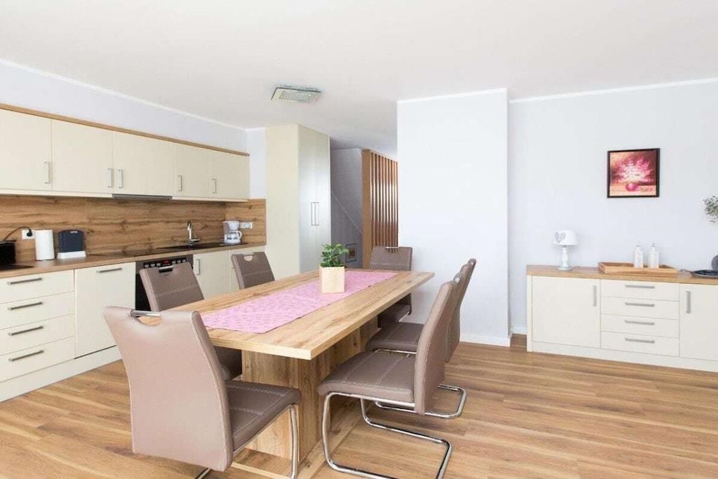Den eksklusive lejlighed ligger på 1. og 2. sal. Derfra har du en fantastisk udsigt over lystbådehavnen, Plauer-søen og udmundingen af Elde. Lejligheden kan nås fra parkeringspladsen, 150 meter væk, fri for biltrafik. En håndkærre er tilgængelig for vores gæster til at transportere bagage ved ankomst og afrejse. Biler må ikke køre ind i ferieområdet. Området er sikret med afspærring.
