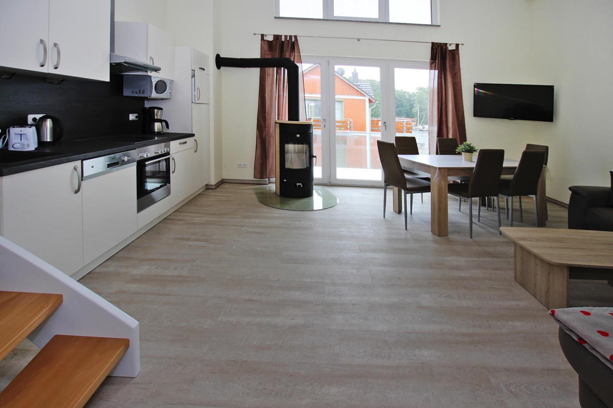 Nyd den vidunderlige udsigt over Plauersøen: Det nybyggede rækkehus ligger direkte ved sportsbådshavnen i den tidligere fiskerby Plau am See. Den højkvalitets og komfortabelt indrettede bolig har en overdækket terrasse og en balkon med en smuk udsigt over vandet. Bådudlejning er lige uden for døren, så du kan gå på opdagelse eller fiske. Centrum og den gamle bydel i den charmerende by - som også er et klimakursted - kan nås til fods herfra. Forskellige restauranter og caféer serverer specialiteter fra Mecklenburg, og små butikker inviterer dig til at gå på opdagelse. Højdepunkter inkluderet: Alle forbrugsbaserede energiomkostninger Sengetøj TRÅDLØS INTERNETADGANG Aktiviteter i nærheden: Guidede fisketure, bådture eller udflugter på et af passagerskibene, hvorfor ikke bare tage et krydstogt over søen! Hvis du selv kan lide at være aktiv, kan du udforske søen på en padletur. Hvis du foretrækker at rejse på tørre fødder, så tag en byrundtur med den lille Plauer Bahn eller oplev landskabets skønhed på en cykeltur eller en vogntur. De med sportslige ambitioner kan teste deres færdigheder i klatreparken. Udflugtstips: Müritz Bjørneskov, Wangeliner-haven og Lübzer Kunstspeicher.