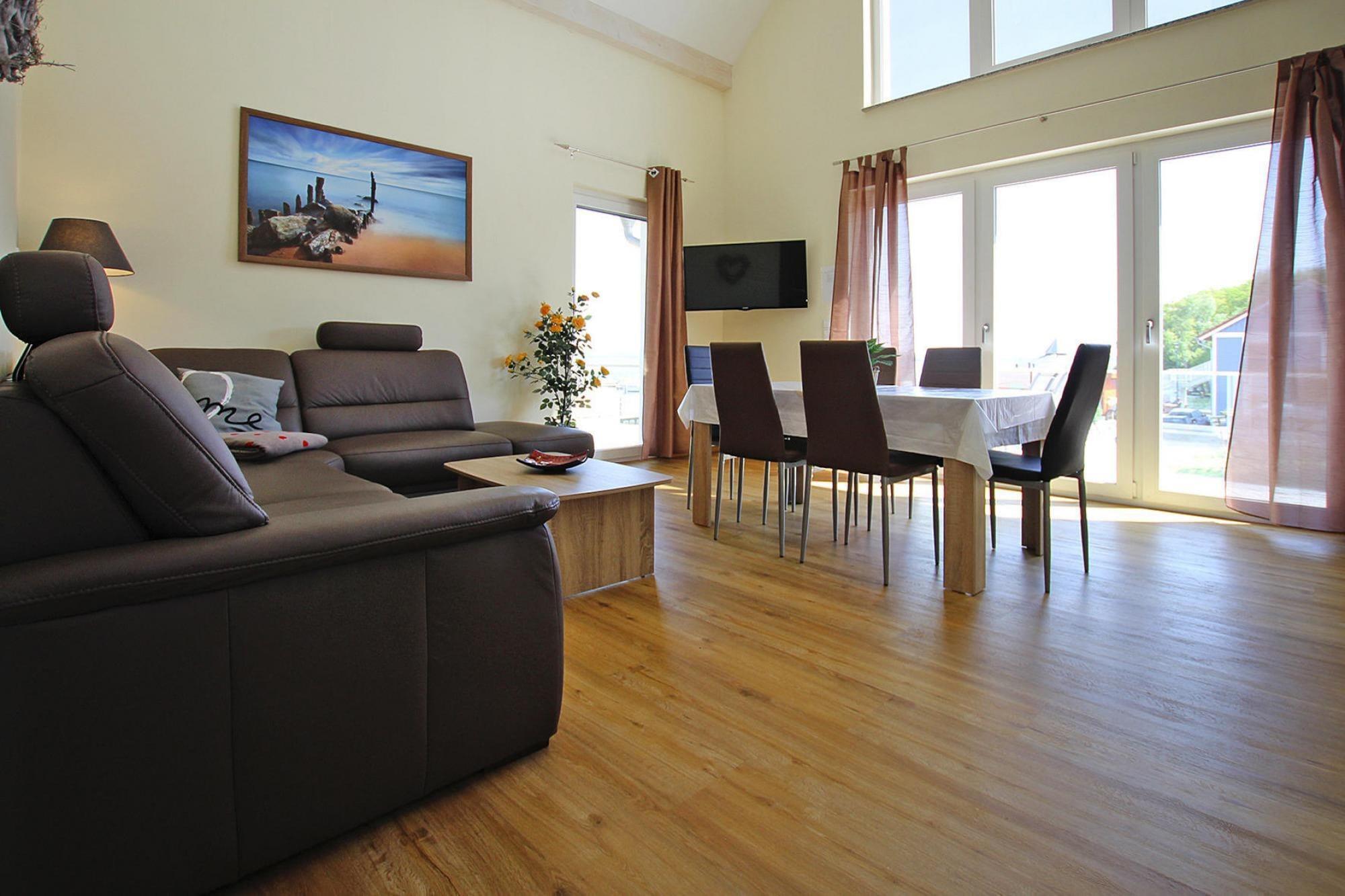 Nyd den vidunderlige udsigt over Plauer See: Ferielejligheden ligger på øverste etage i det nybyggede højkvalitets og komfortabelt indrettede rækkehus med sydvendt altan, beliggende direkte ved sportsbådshavnen i det tidligere fiskeri. by Plau am See og byder på en smuk udsigt over vandet. En bådudlejning er lige uden for døren, så du kan tage på opdagelsesture eller fiske. Herfra kan du gå til centrum og den gamle bydel i den charmerende by og det klimatiske kursted Plau am See. Forskellige restauranter og caféer serverer Mecklenburg-specialiteter, og små butikker inviterer dig til at gå på opdagelse. Derudover er der seværdigheder som Plau-slotstårnet fra 1449 med dets dybe fangehul og smalle opstigning, den kendte løftebro fra 1916 og bykirken fra 1200-tallet, som kan ses på afstand.Højdepunkter omfatter: WLANActivities i området: Hvad med en guidet fisketur eller en kuttertur? Ellers kan du tage en tur på et af passagerskibene eller udforske søen på en padletur. Hvis du foretrækker at holde fødderne tørre, kan du tage på en byrundtur med den lille Plauer Bahn eller opdage skønheden i landskabet under en cykeltur eller en vogntur. Ambitiøse atleter kan teste deres færdigheder i klatreparken. Udflugtstips: Bärenwald Müritz, Wangeliner-haven og Lübzer Kunstspeicher. Mobilitet: Ikke egnet til personer med nedsat mobilitet
