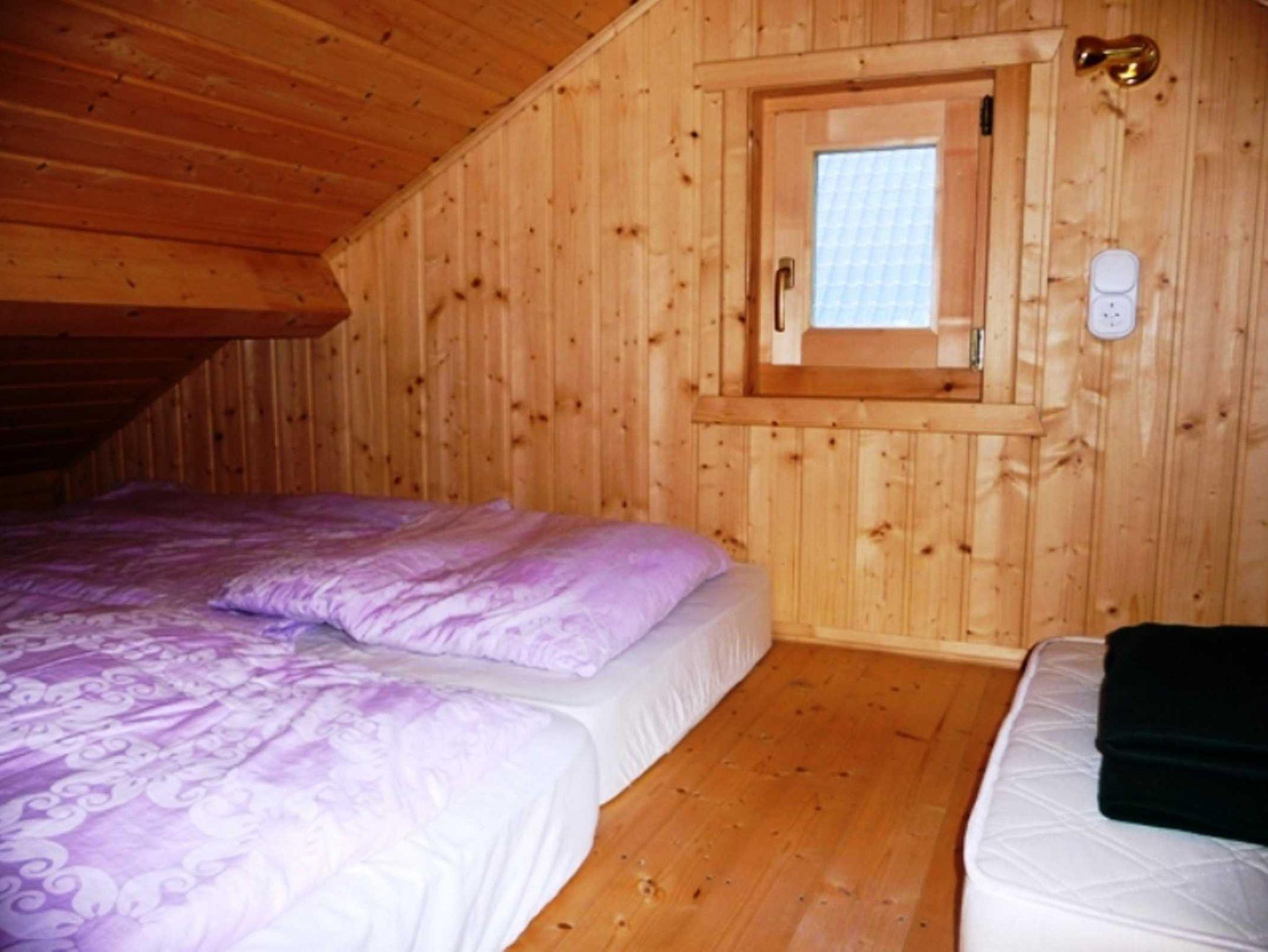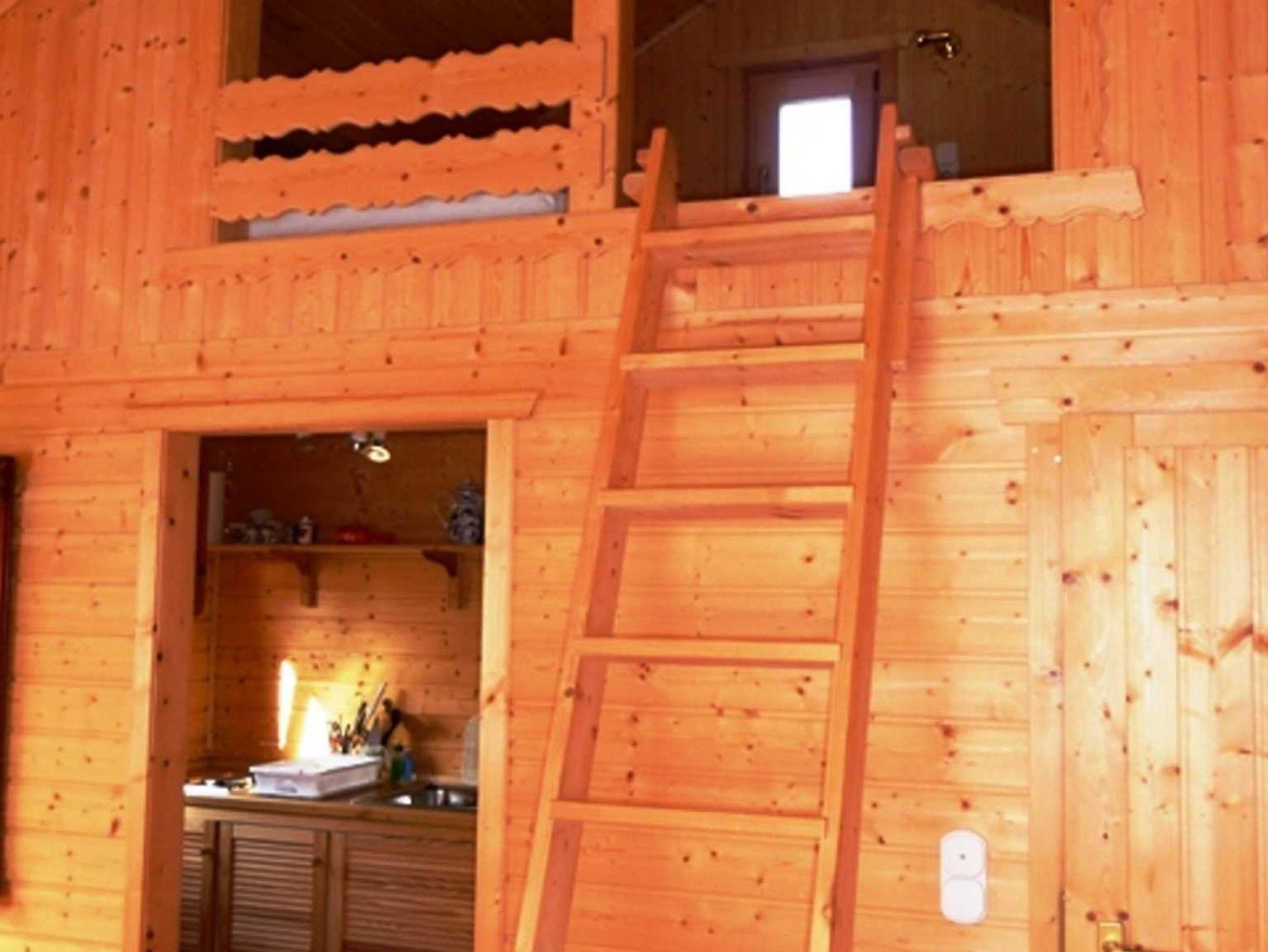 Die Ferienunterkunft besteht aus einem kleinen Wohnbereich mit einer Eß/Sitzecke und TV und einem Schlafboden (Alkoven) mit drei Matratzen, der über eine Leiter zu erreichen ist.