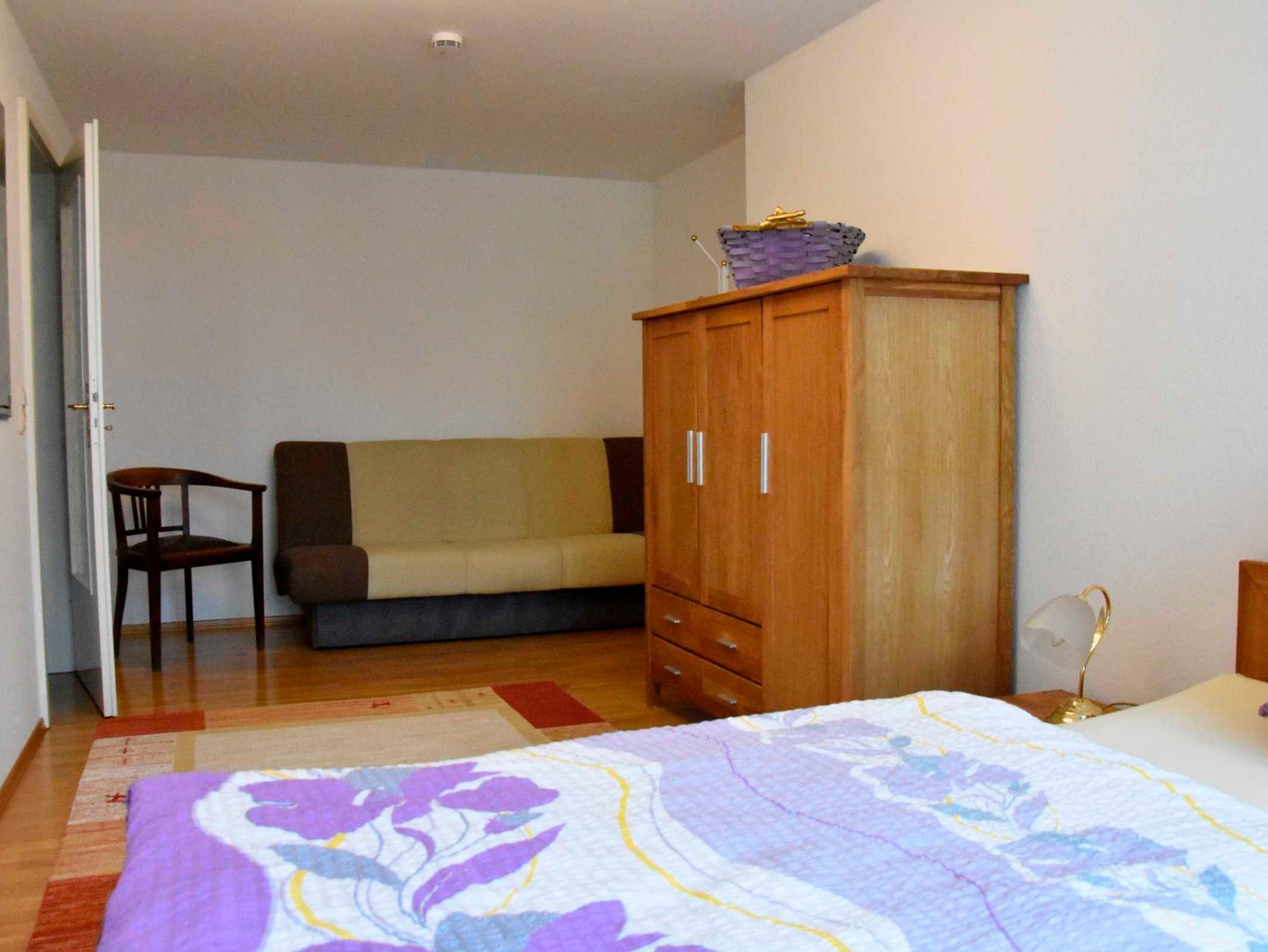 Sie besteht aus 1 Wohnraum, 1 Schlafraum mit Doppelbett und Aufbettungsmöglichkeit, einer Küche und einem Bad mit Dusche.