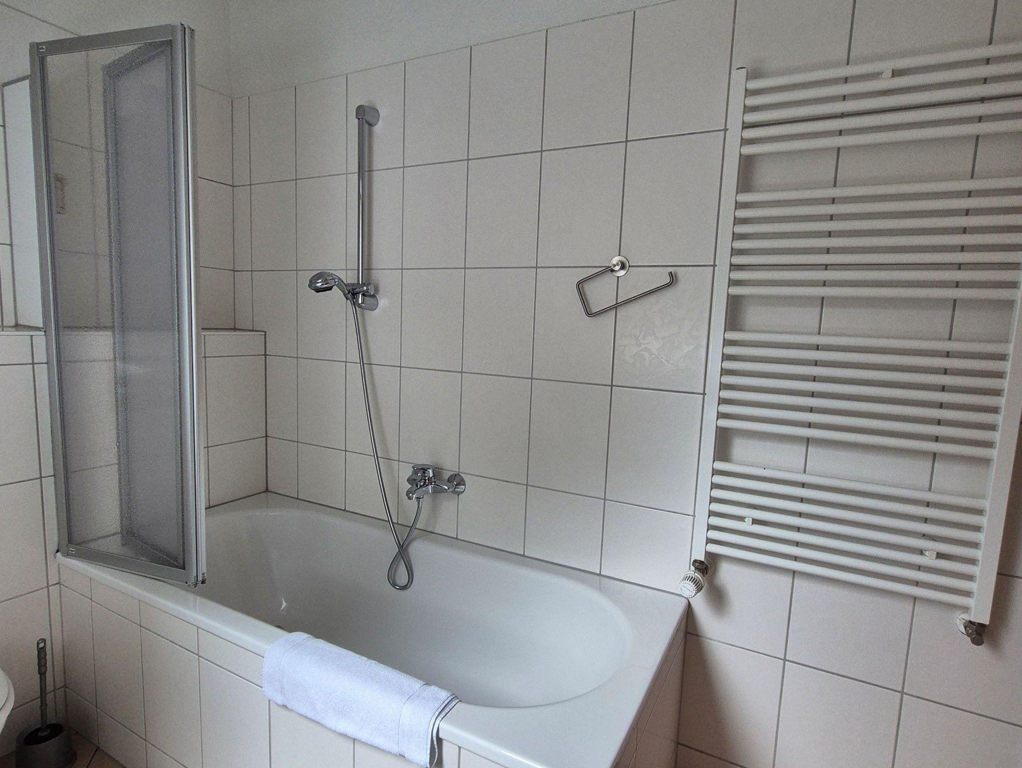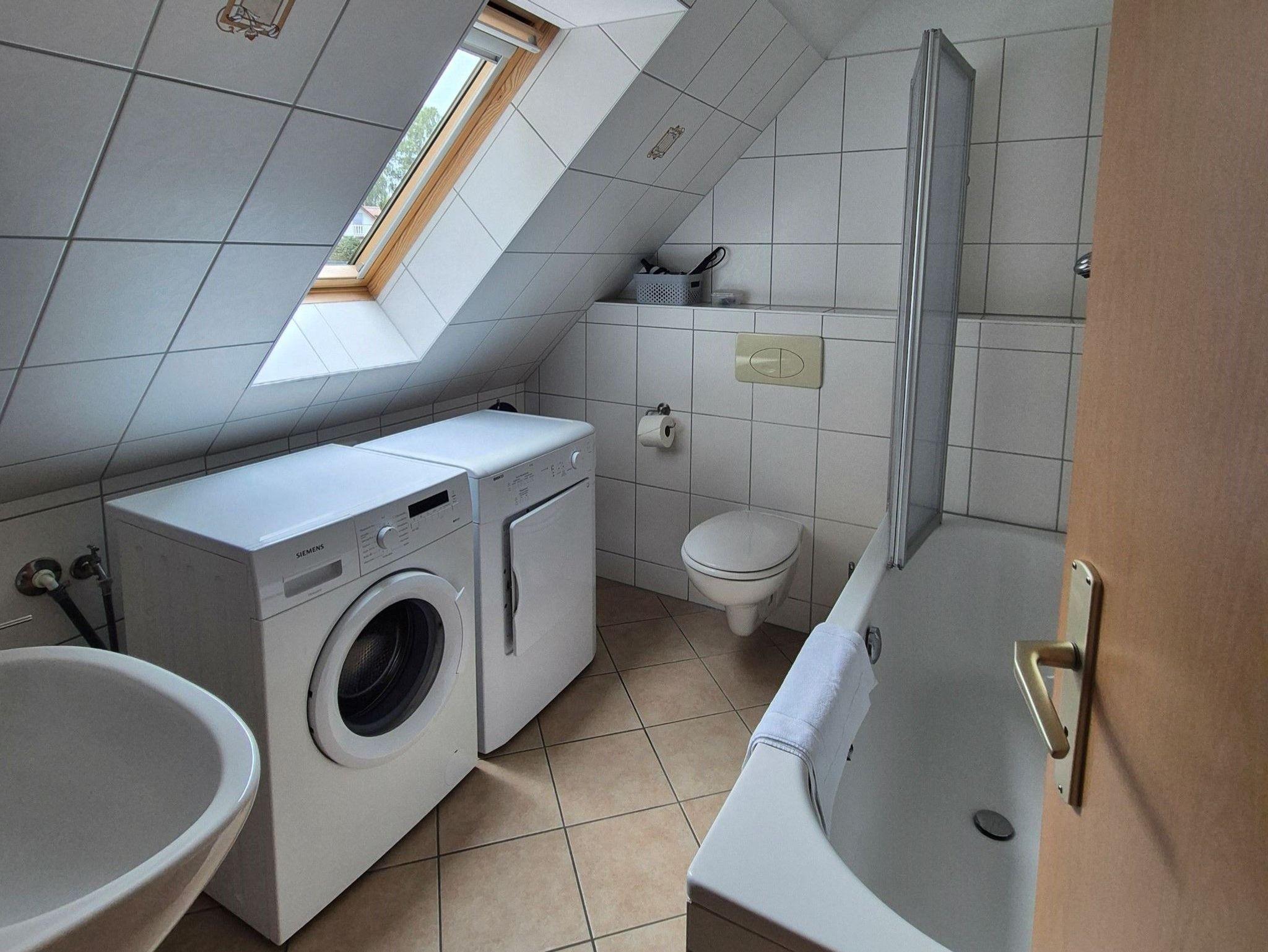 aufs Wasser. Nebenan ein SZ mit 2 Einzelbetten und ein Wannenbad mit Waschmaschine und Trockner.