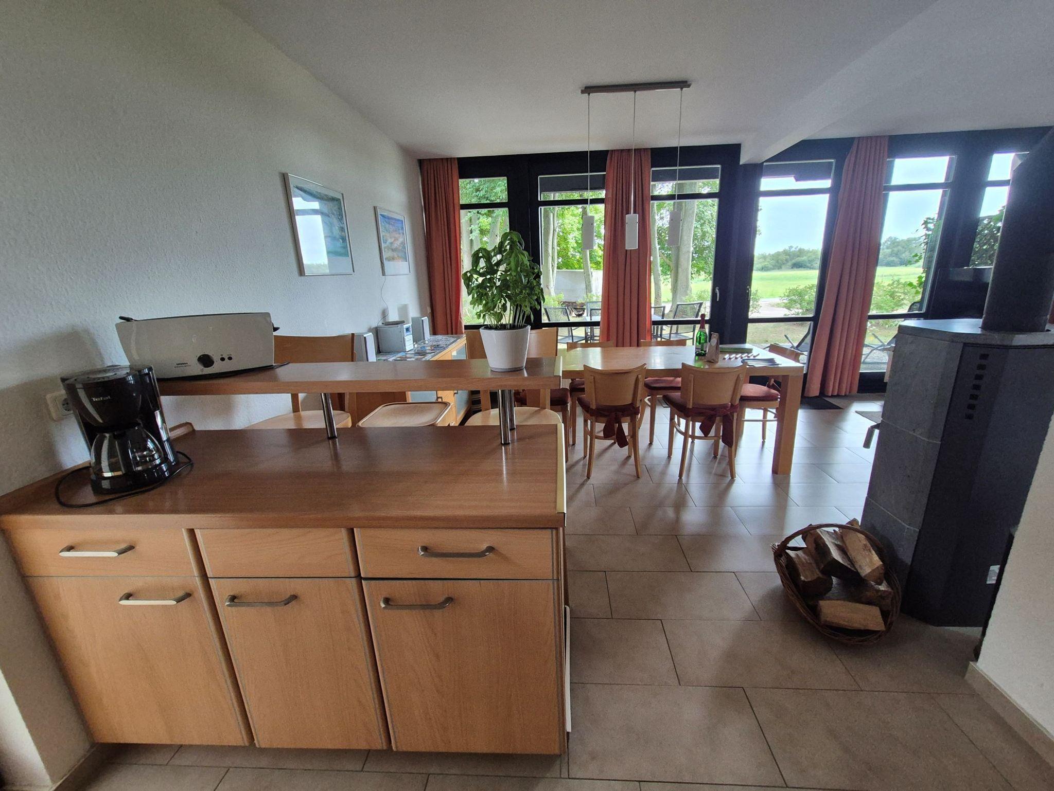 Essbereich und einem Kamin. Von hier gelangen Sie zur Terrasse mit Blick aufs Wasser.