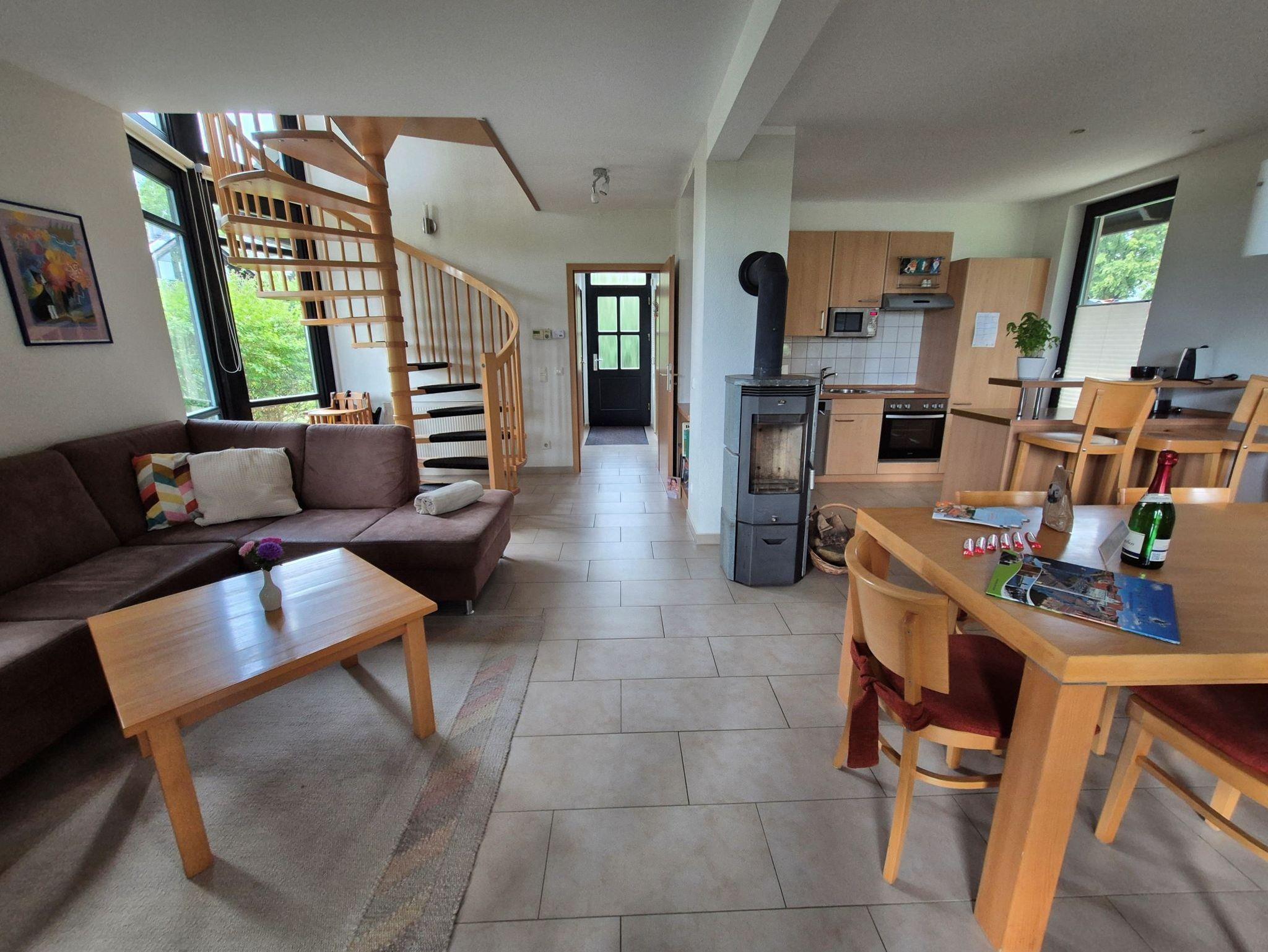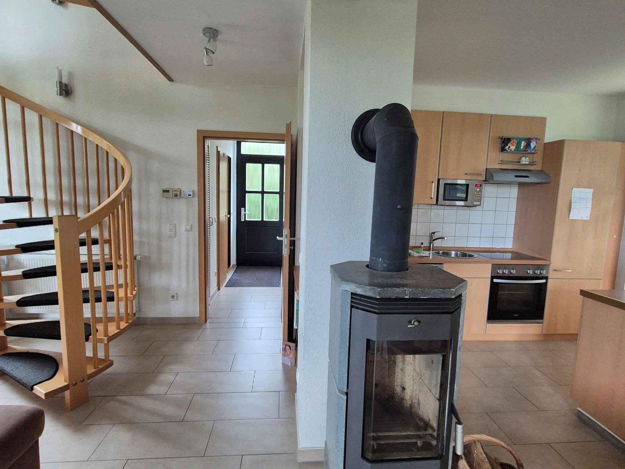 Im EG befindet sich ein Duschbad mit Sauna, ein SZ mit einem Doppelbett und die Küche mit Wohn -und