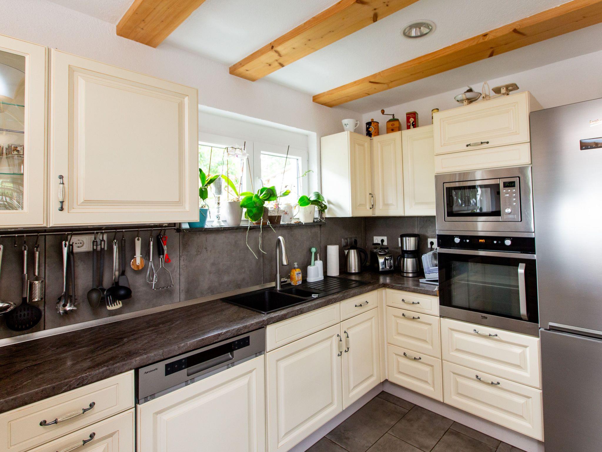 Sie erwartet ein modern ausgestattetes Ferienhaus auf einem eigenen, eingezäunten Gartengrundstück mit zwei Terrassen und einen Balkon der ihnen einen fantastischen Ausblick über den Plauer See bietet. Unser Garten mit Strandkorb lädt sie zum Verweilen, lesen oder einfach nur chillen ein. Und für die Grillmeister unter ihnen haben wir eine Außenküche eingerichtet mit allem Komfort um ihre Familie oder Freunde zu verwöhnen. Das Haus ist folgendermaßen aufgeteilt: Im Erdgeschoß befindet sich ein Schlafzimmer mit Twinbett 1,60 m * 2,00m, ein Duschbad mit Doppelwaschbecken und der 36 qm große Wohn- und Essbereich mit Kamin und einer offenen Küche von der sie beim Kochen auf den See schauen können, alle Räume sind mit Fußbodenheizung. Im Dachgeschoß befindet sich ein Schlafzimmer mit 2 getrennten Betten, ein Schlafzimmer mit einem Boxspringbett 1,80 m * 2,00 m und einem Babybett 1,20m *0,60 m, der Balkon mit fantastischen Blick über den Plauer See und ein Bad mit Badewanne. Alle Schlafzimmer verfügen über einen modernen Smart TV Fernseher, im Wohnbereich haben wir einen 55 Zoll großen OLED Fernseher, Internet über Glasfaser liegt in allen Räumen an, die Fenster sind mit Außenrollos und Fliegennetzen versehen. Die schöne, große Landhausküche ist mit allem ausgestattet (Induktionsherd, Backofen, Geschirrspülmaschine, Mikrowelle, Senseo Kaffeemaschine, Mixer, Toaster, Eierkocher, Wasserkocher, Brotscheidemaschine, Kühl- und Gefrierkombination und vieles mehr). Im Wohn- Essbereich steht ihnen eine moderne Ledercouch, ein Kamin für kalte Tage und ein großer Esstisch zur Verfügung. Unsere Terrasse am Wohnbereich hat eine gemütliche Sofaecke und auf der Terrasse an der Außenküche steht eine große Essgruppe. Ein Parkplatz ist auf dem Grundstück, weitere kostenfreie Parkplätze befinden sich ganz in der Nähe. Für unsere kleinen Gäste steht eine komplette Kinderausstattung (Hochstuhl, Kindergeschirr, Spielzeug, Bücher, Treppengitter usw.) zur Verfügung.
