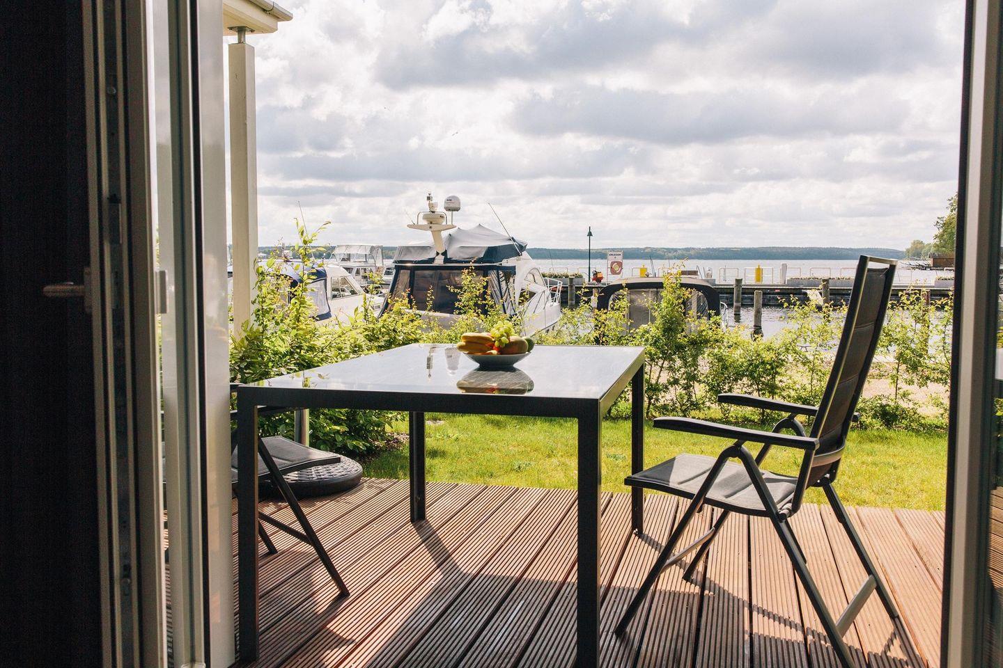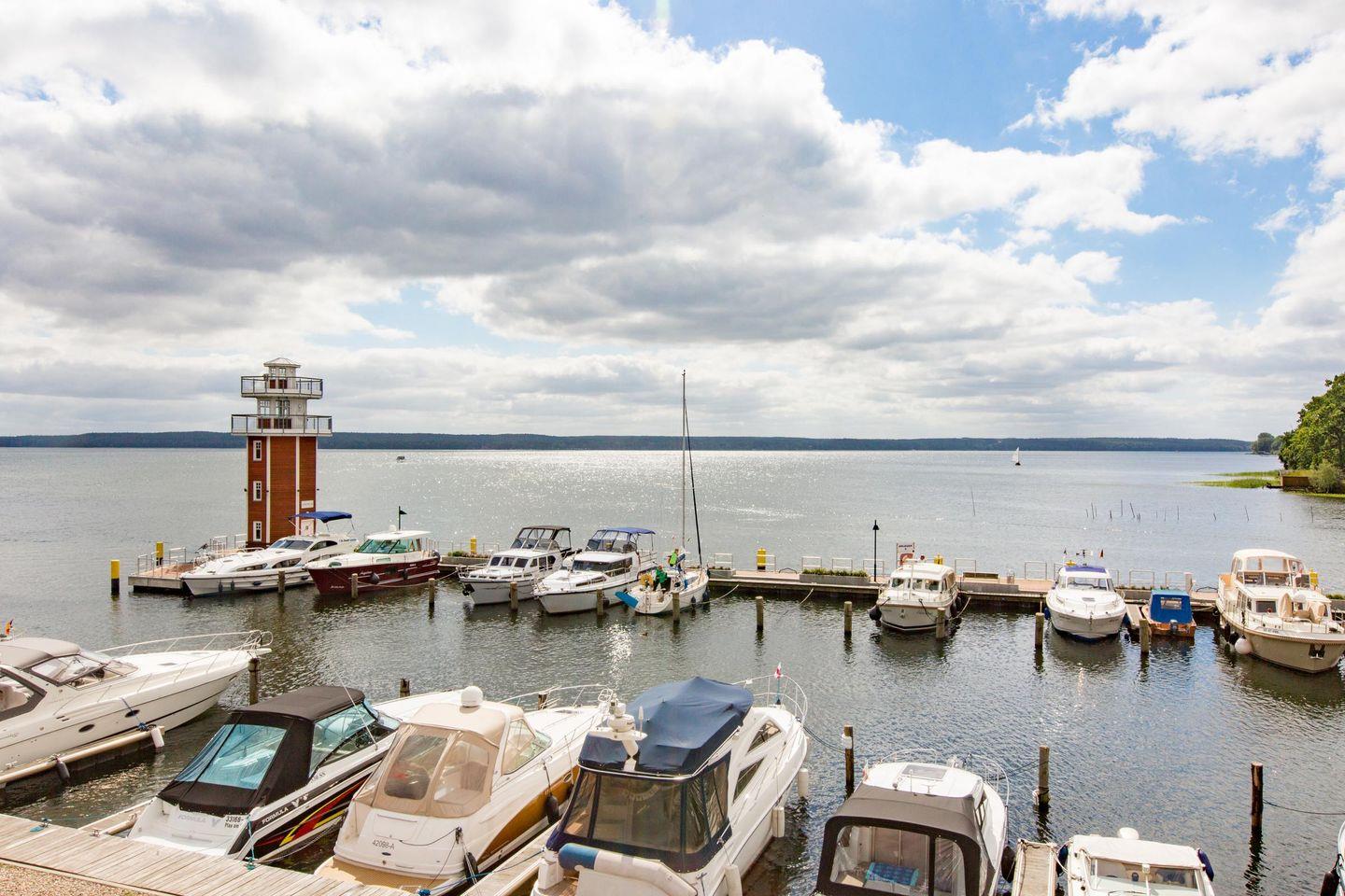 Der direkte Blick auf den Hafen und den dahinter liegenden See vermittelt ein maritimes Flair.