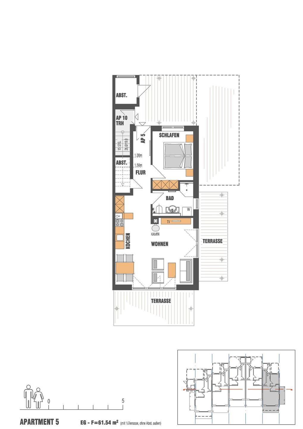 Das modern und komfortabel eingerichtete Apartment befindet sich im Parterre des Hauses 6