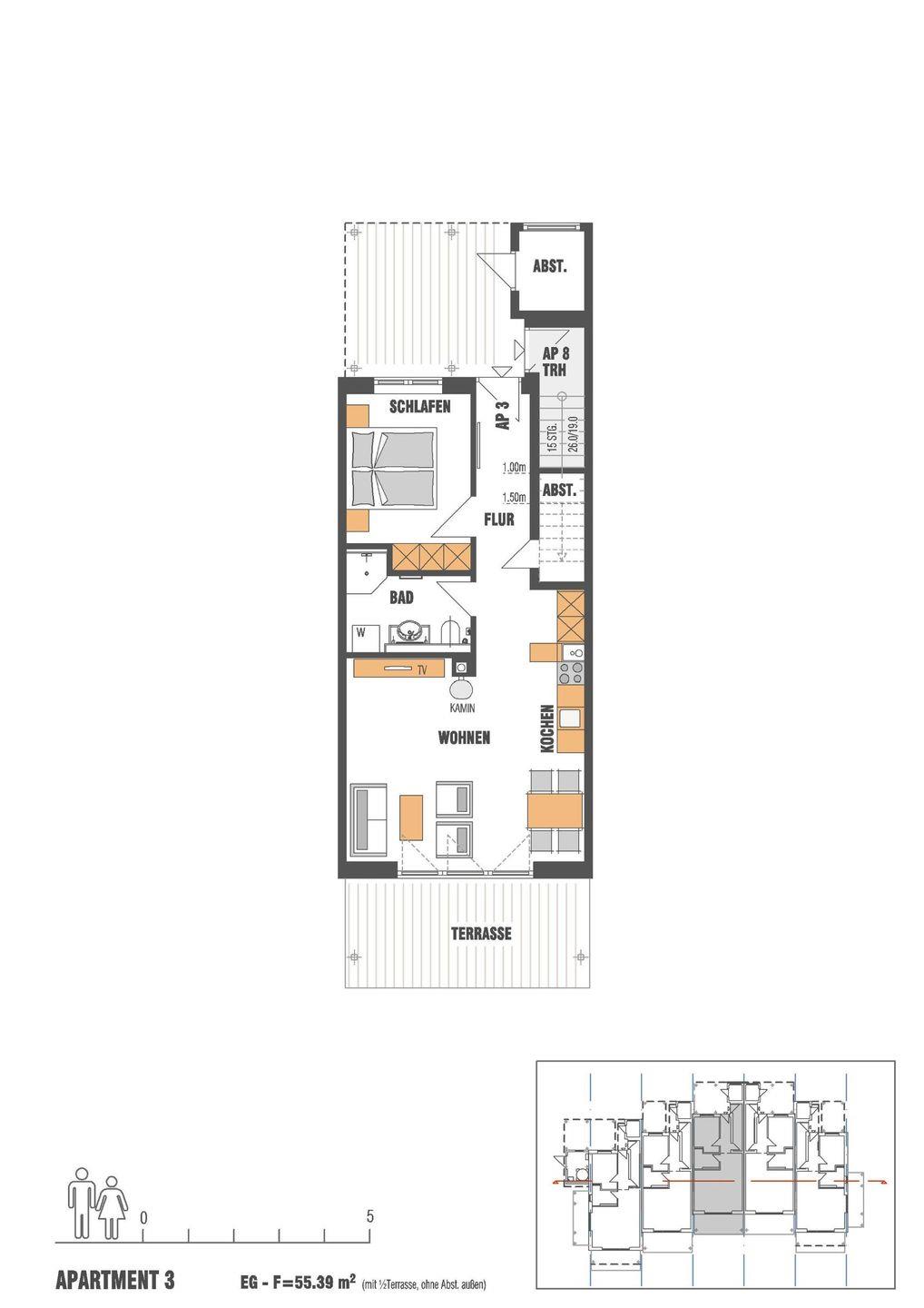 Das gemütliche 2-Zimmer-Apartment befindet sich in Haus 6 im Parterre.