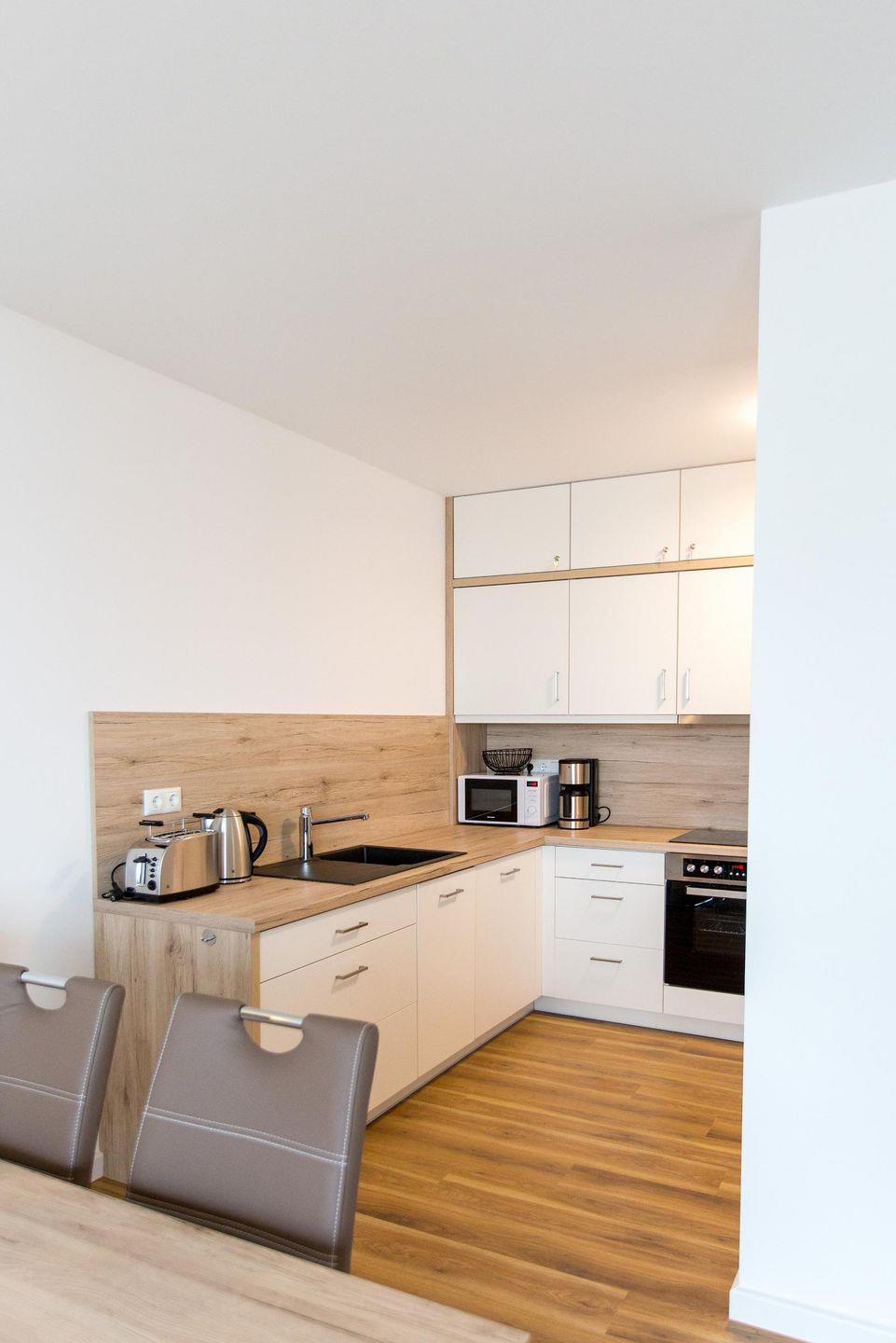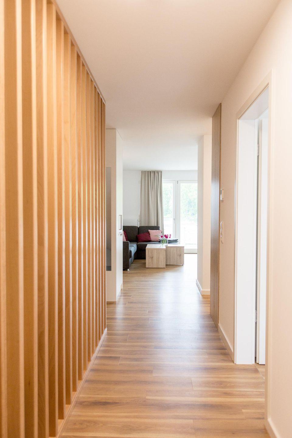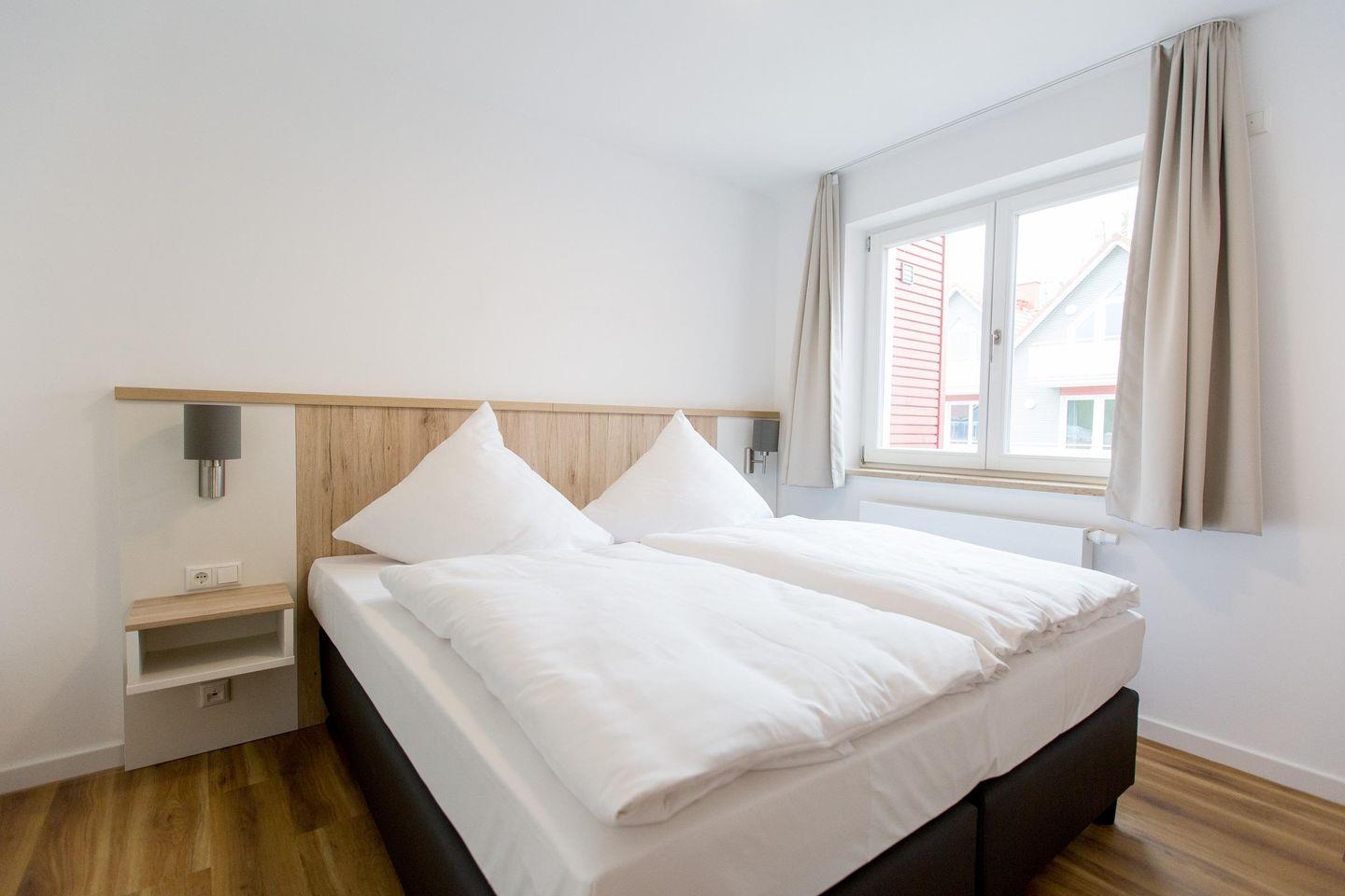 Das Apartment ist ideal für sechs Personen. Eine Aufbettung für zwei weitere Personen ist auf dem Schlafsofa im Wohnzimmer möglich.