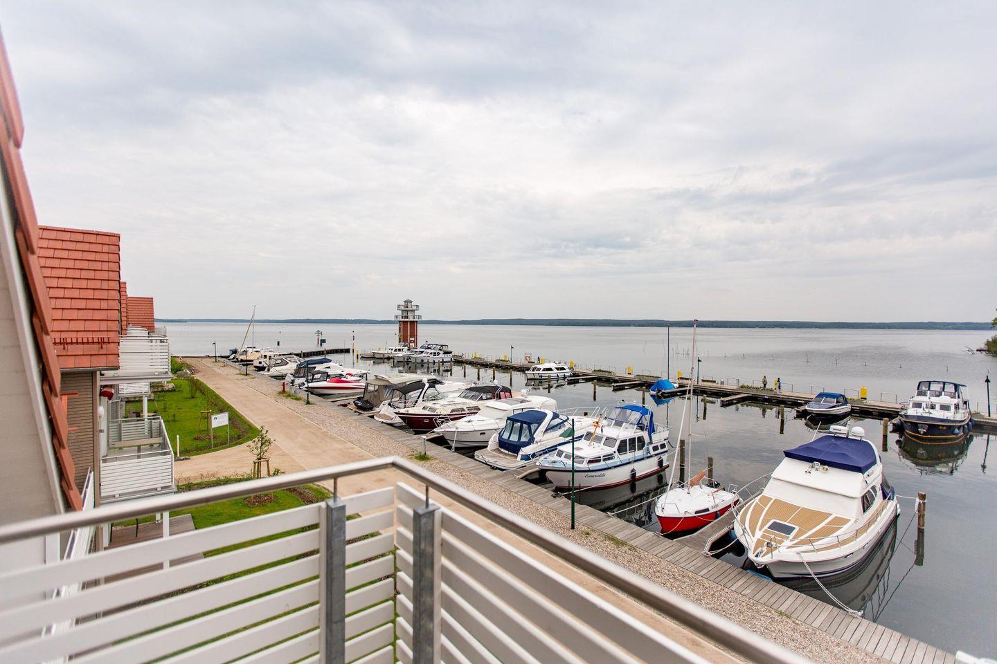 Zwei Balkone in Süd-Lage laden zum Entspannen ein. Von dort genießen Sie den Blick auf den Plauer See, den neuen Hafen, den Aussichtsturm und die Elde-Ausfahrt.