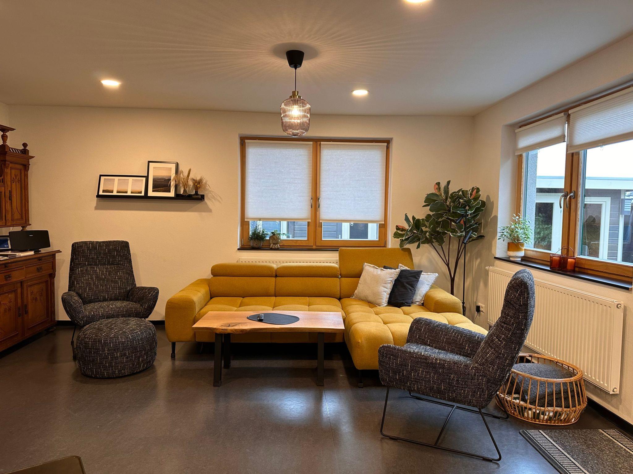 Our holiday home has 3 bedrooms, 1 bathroom with shower and double washbasin, 1 WC with washing facilities and a large living, dining and cooking area with fireplace. The fenced property has 4 car parking spaces, 2 of which are covered, and the garden at the back of the house is quiet and cannot be seen from outside. The partially covered terrace leads to the living and dining area, and we rent out our holiday home as a classic holiday home for families and friends, as well as an opportunity to celebrate on a small scale. These can be school commencements, birthdays or other family celebrations. Smaller seminars or training courses can also be organised here.