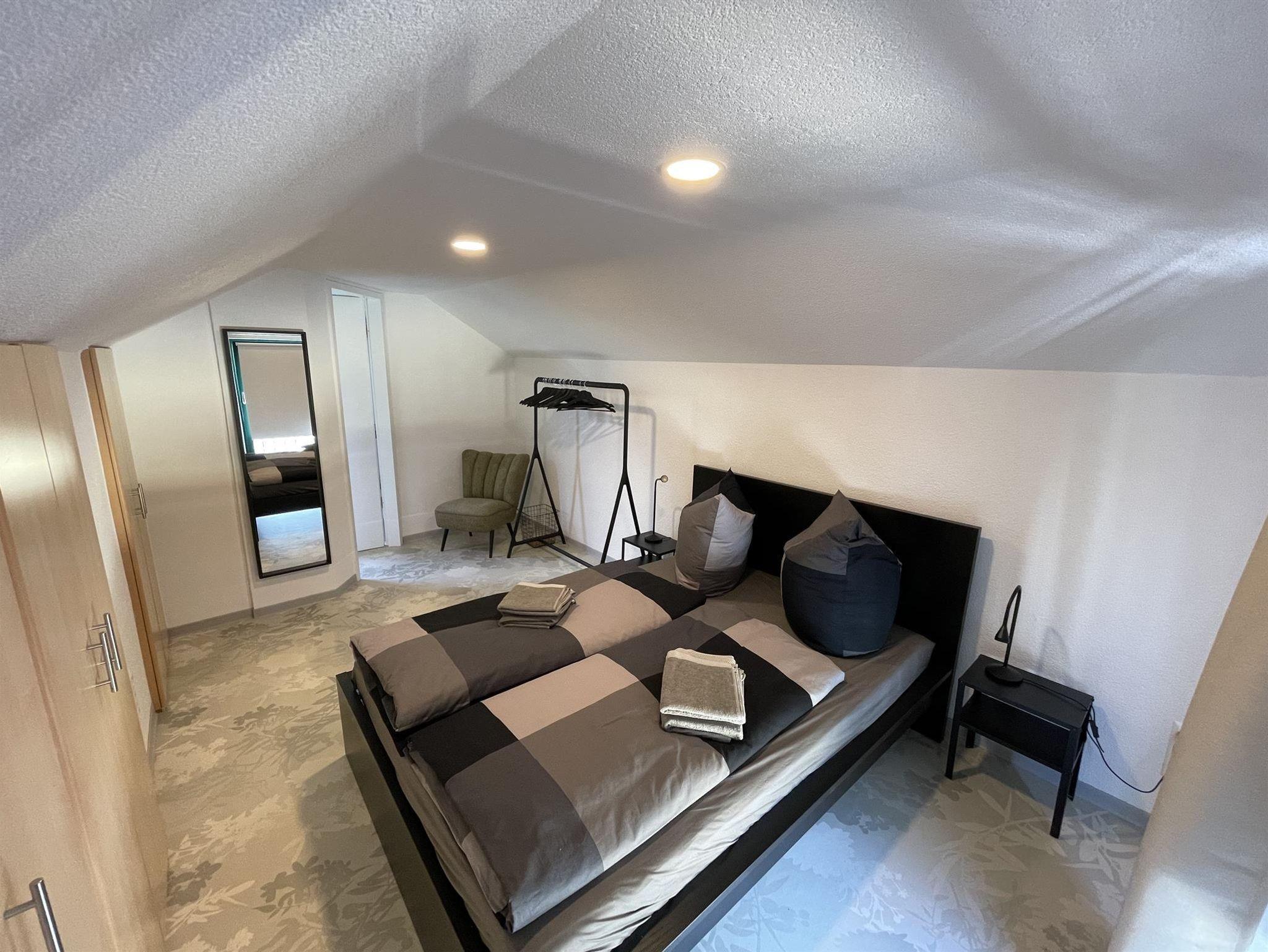 2. SCHLAFZIMMER - über Wendeltreppe erreichbar (Dachgeschoss), Bett 1,80x2 m, ruhige Lage, Balkontür mit Verdunklungsvorhang