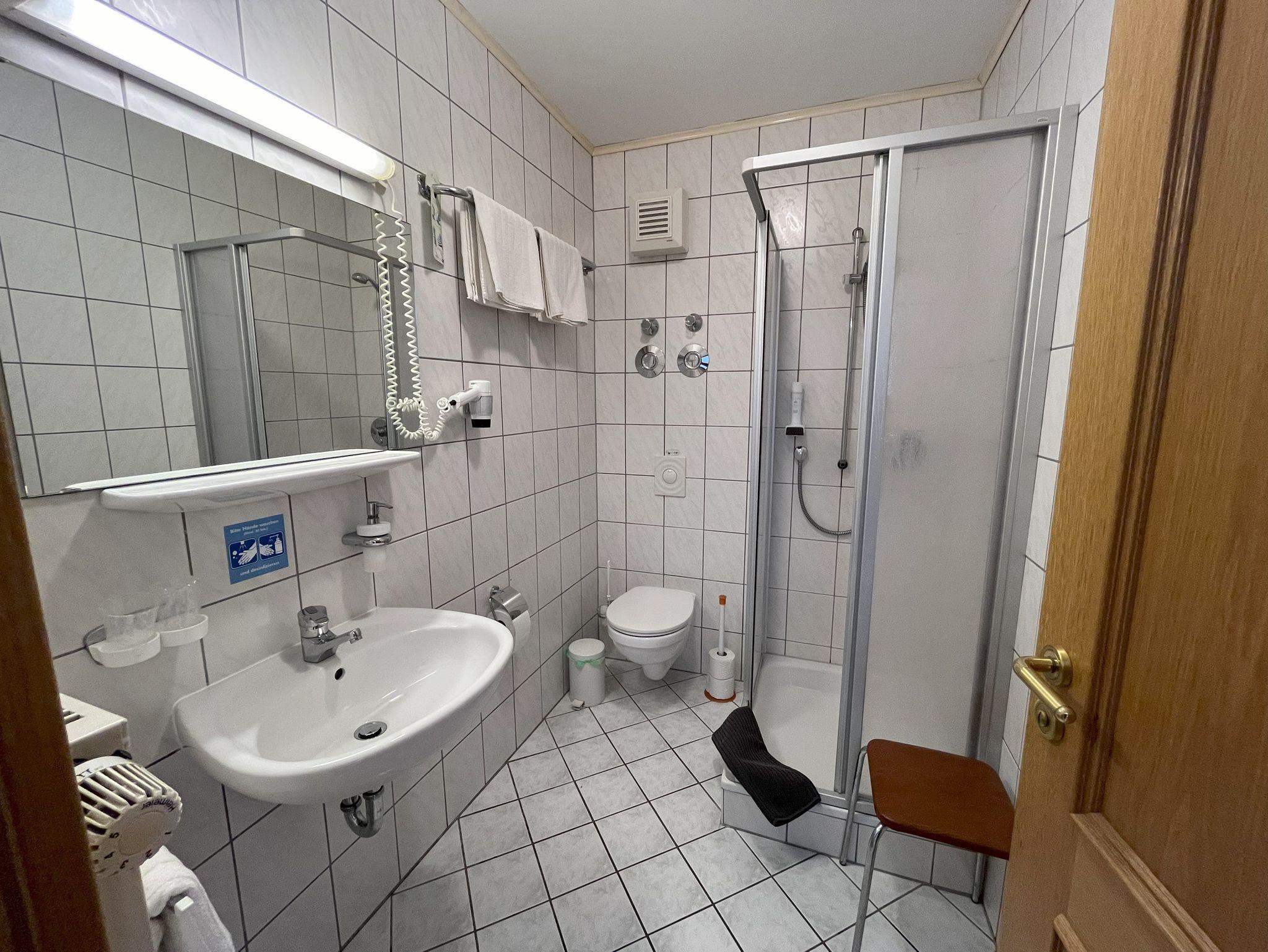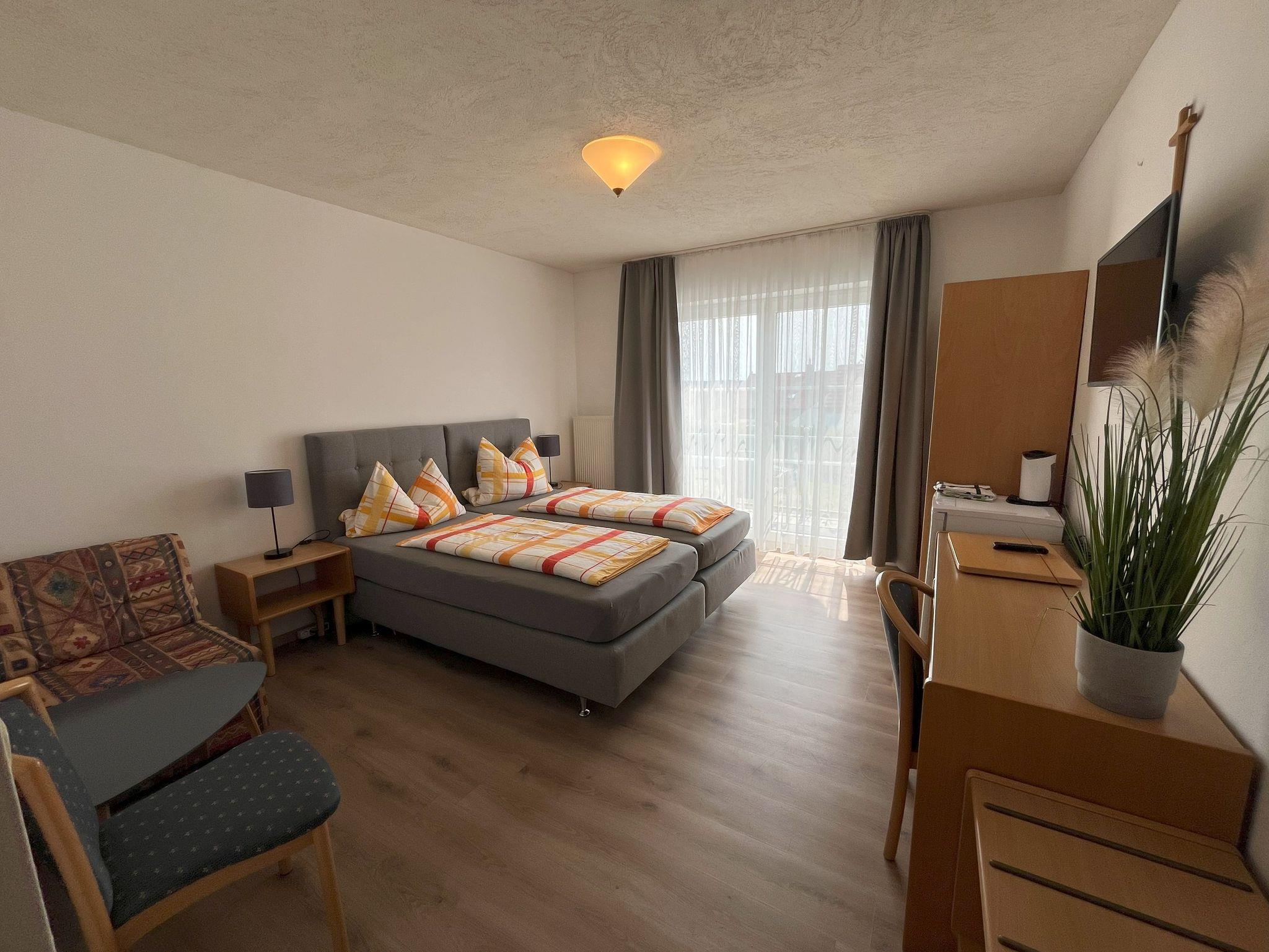 Im 2. Obergeschoss gelegen, bietet Zimmer 5 auf ca. 27?m² eine ideale Kombination aus Funktionalität und Wohlfühlatmosphäre. Der Balkon zur sonnigen Südseite lädt zum Entspannen ein und eröffnet einen schönen Blick ins Grüne. Das eigene Bad ist ausgestattet mit Dusche, WC und Föhn. Zur weiteren Ausstattung gehören SAT-TV, kostenfreies WLAN, ein Safe sowie kleine Küchengeräte wie Wasserkocher und ein Kühl-/Gefrierschrank. Das Zimmer ist rauchfrei und bestens für Allergiker geeignet. Grill, Spielmöglichkeiten für Kinder, ein Trampolin, eine gemeinschaftlich nutzbare Waschmaschine und Trockner sowie sichere Abstellplätze für Fahrräder mit E-Bike-Ladestationen stehen allen Gästen zur Verfügung.