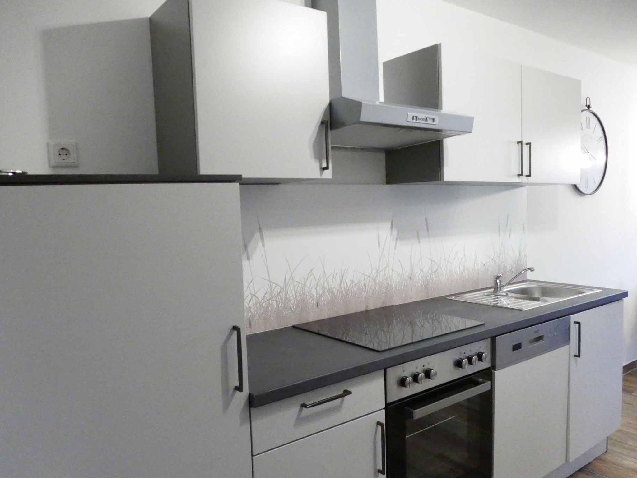 Alle Wohnungen verfügen über eine komplett ausgestattete Einbauküche mit Herd,