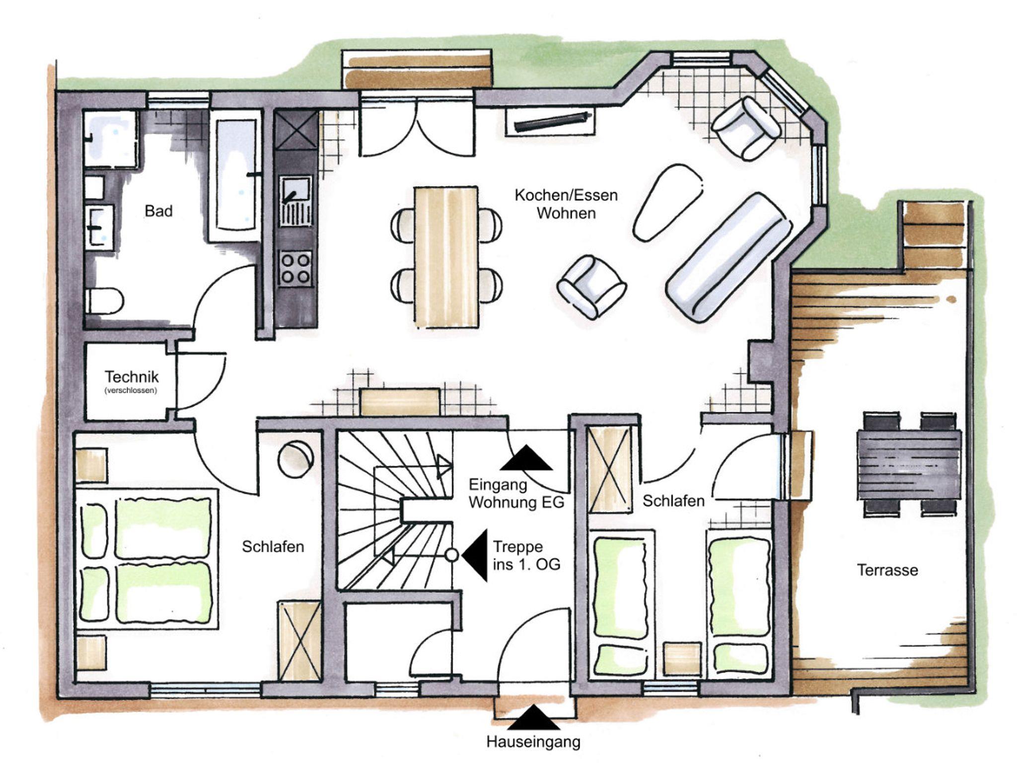 Unsere Wohnung 1 befindet sich im Erdgeschoss.