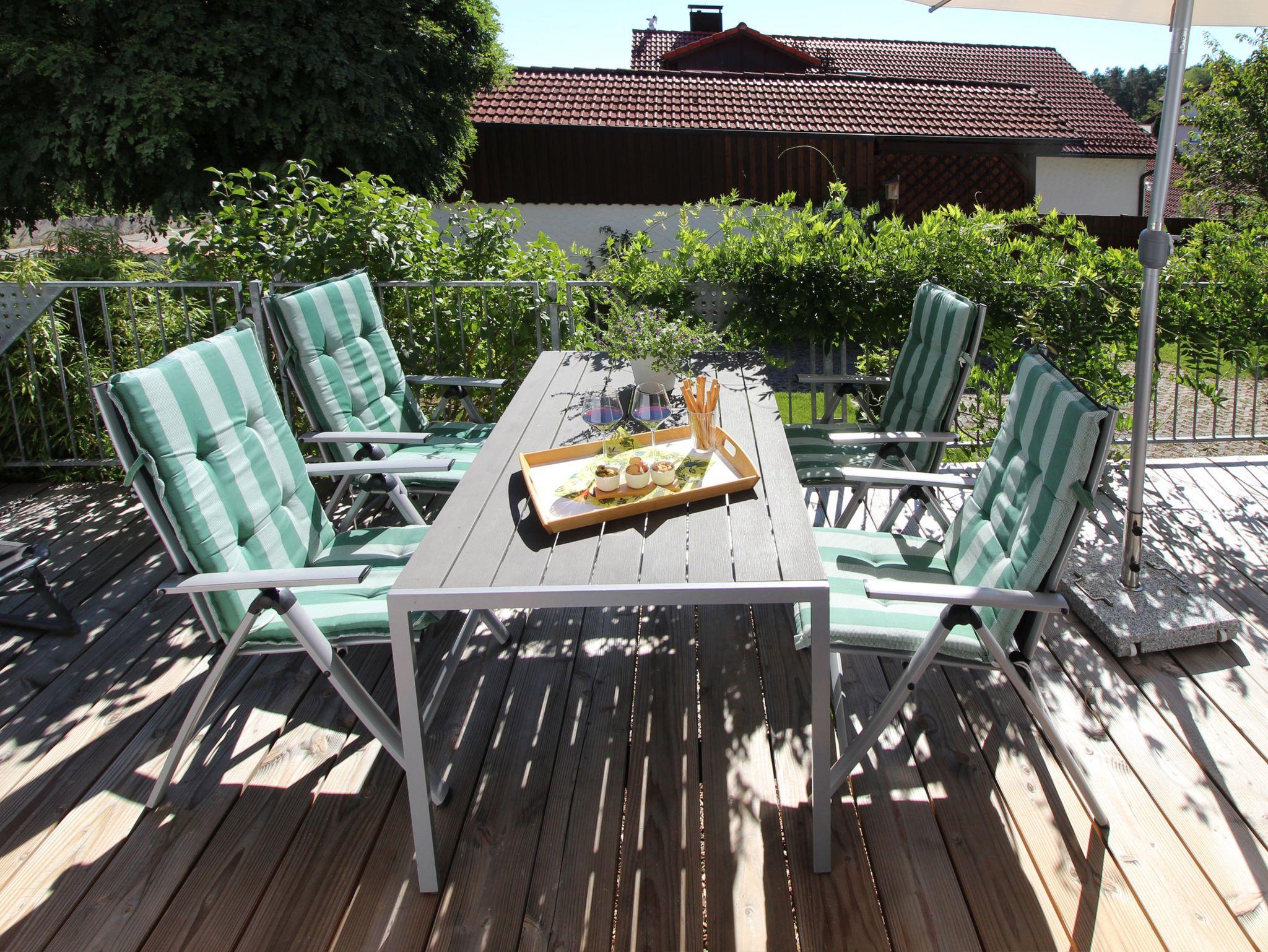 Wer jetzt gerne noch die frische Luft an einem lauen Abend genießen möchte, kann dies auf der nach Süden ausgerichteten Terrasse tun.