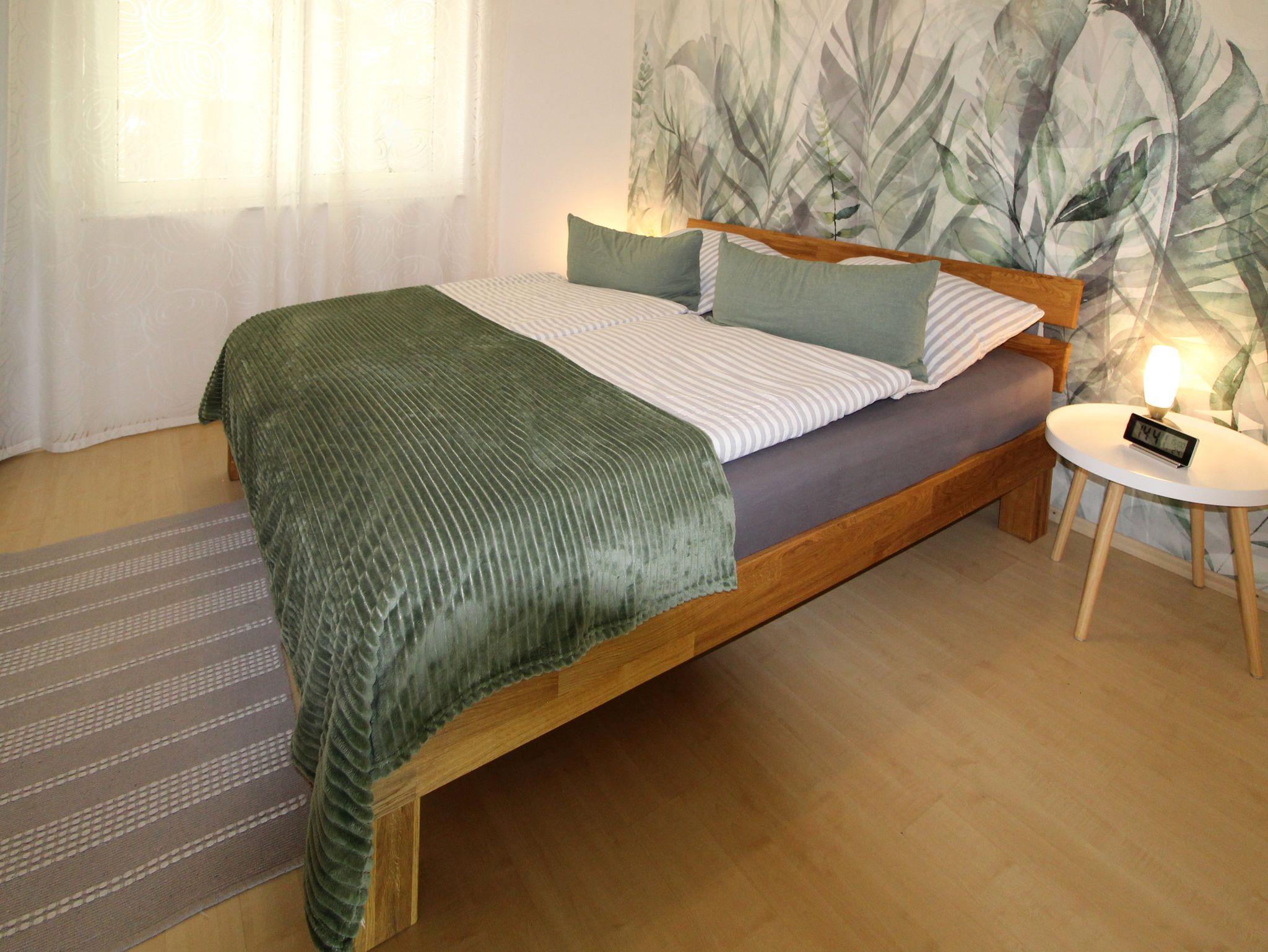 Mit einer Gesamtfläche von ca. 70 m² verfügt die Wohnung über 2 Schlafzimmer. Ein Zimmer ist mit Doppelbett und ein Zimmer ist mit 2 Einzelbetten ausgestattet. Das geräumige Bad verfügt über Dusche und Badewanne, WC.