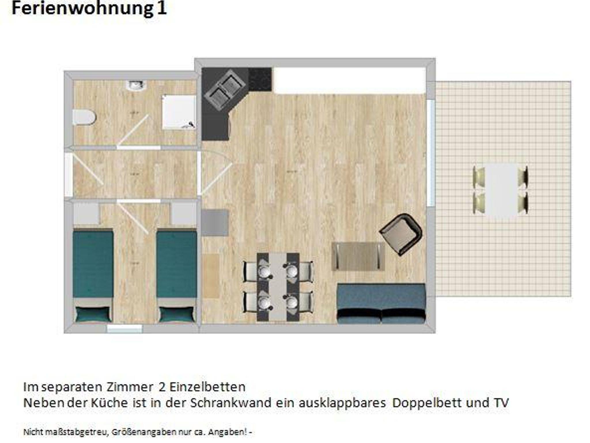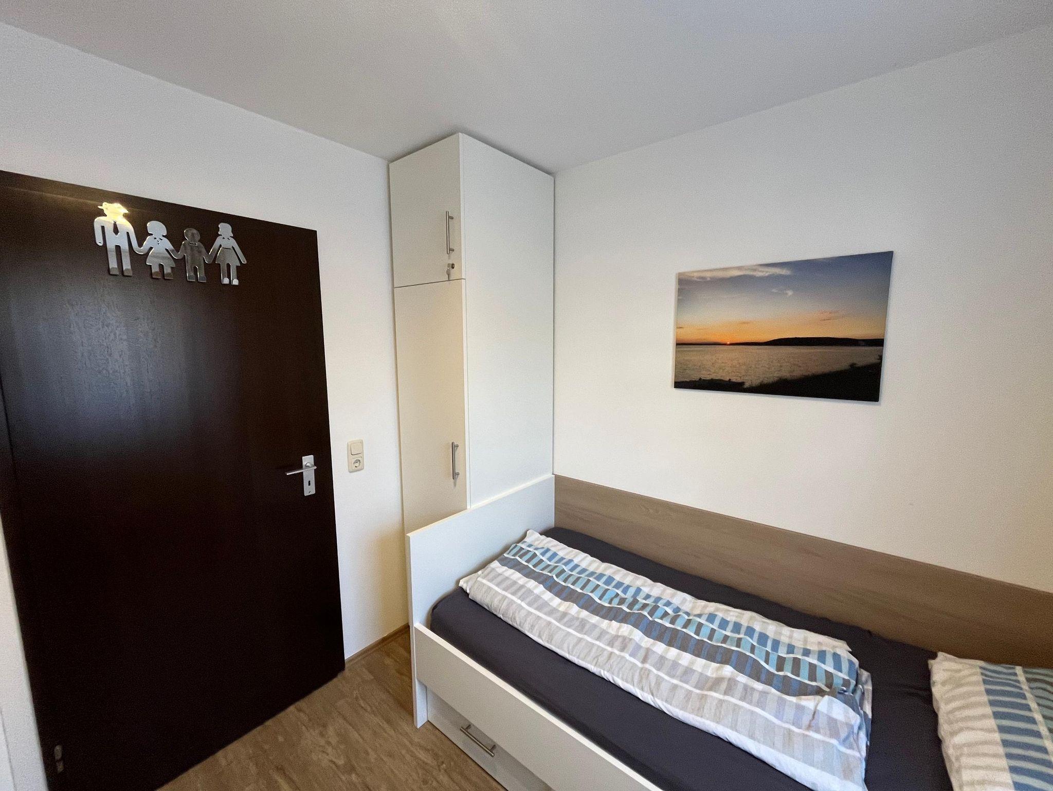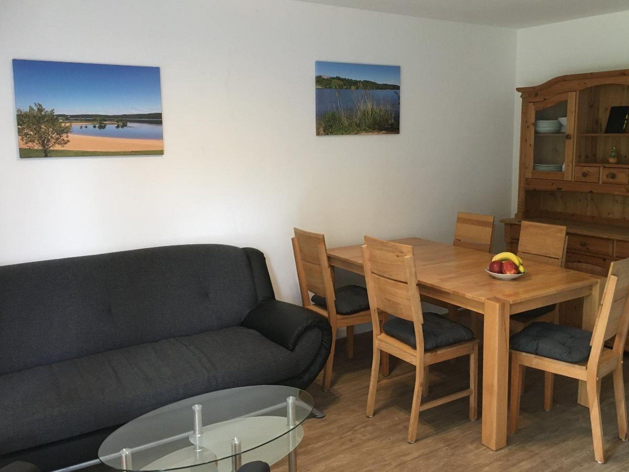 Die Wohnung ist 42qm groß und für bis zu 4 Personen geeignet. Die Wohnung verfügt über ein Schlafzimmer mit zwei Einzelbetten. Im Wohnbereich ist eine Couchecke mit SAT-TV, ein Doppelbett, der Essbereich mit Küche (Herd, Spülmaschine, Mikrowelle). Das Bad ist mit Dusche und WC ausgestattet. Handtücher und Bettwäsche sind im Preis inklusive. Die Betten sind bei Anreise bezogen. Die Handtücher liegen für Sie bereit. Die Wohnung verfügt ausschließlich über Wischböden. Ein Babybett und Hochstuhl sind auf Anfrage vorhanden. Die Terrasse, ausgestattet mit Gartenmöbeln, ist nach Süd-Westen ausgerichtet. Auf der Terrasse können Sie gemütliche Grillabende verbringen. Ein Parkplatz ist im Preis inklusive. Die Wohnung ist perfekt für Radfahrer, die den Brombachsee erkunden möchten.