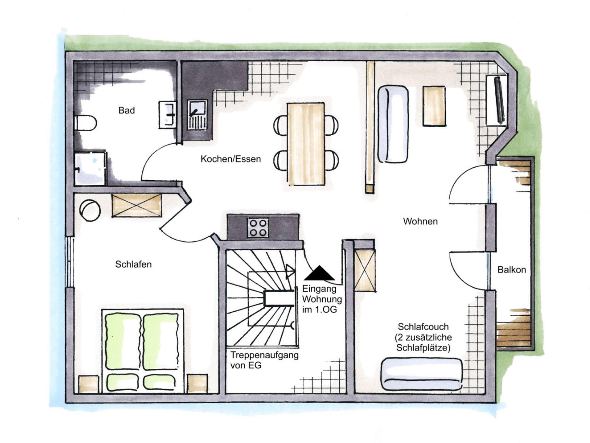 Unsere Wohnung 2 befindet sich im ersten Obergeschoss.