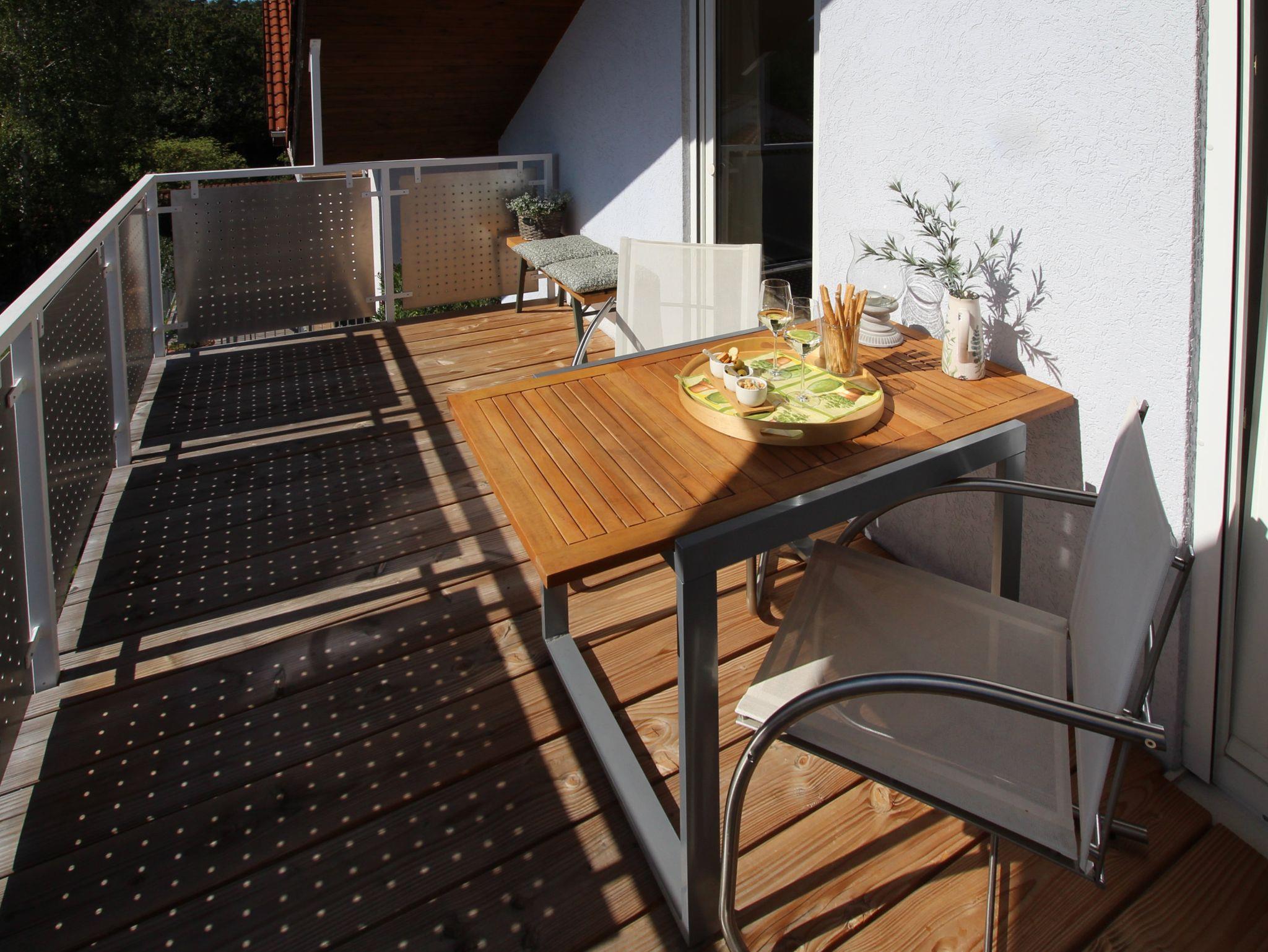 Die schöne Aussicht auf dem Balkon lädt zu einem kleinen „Sundowner“ ein.