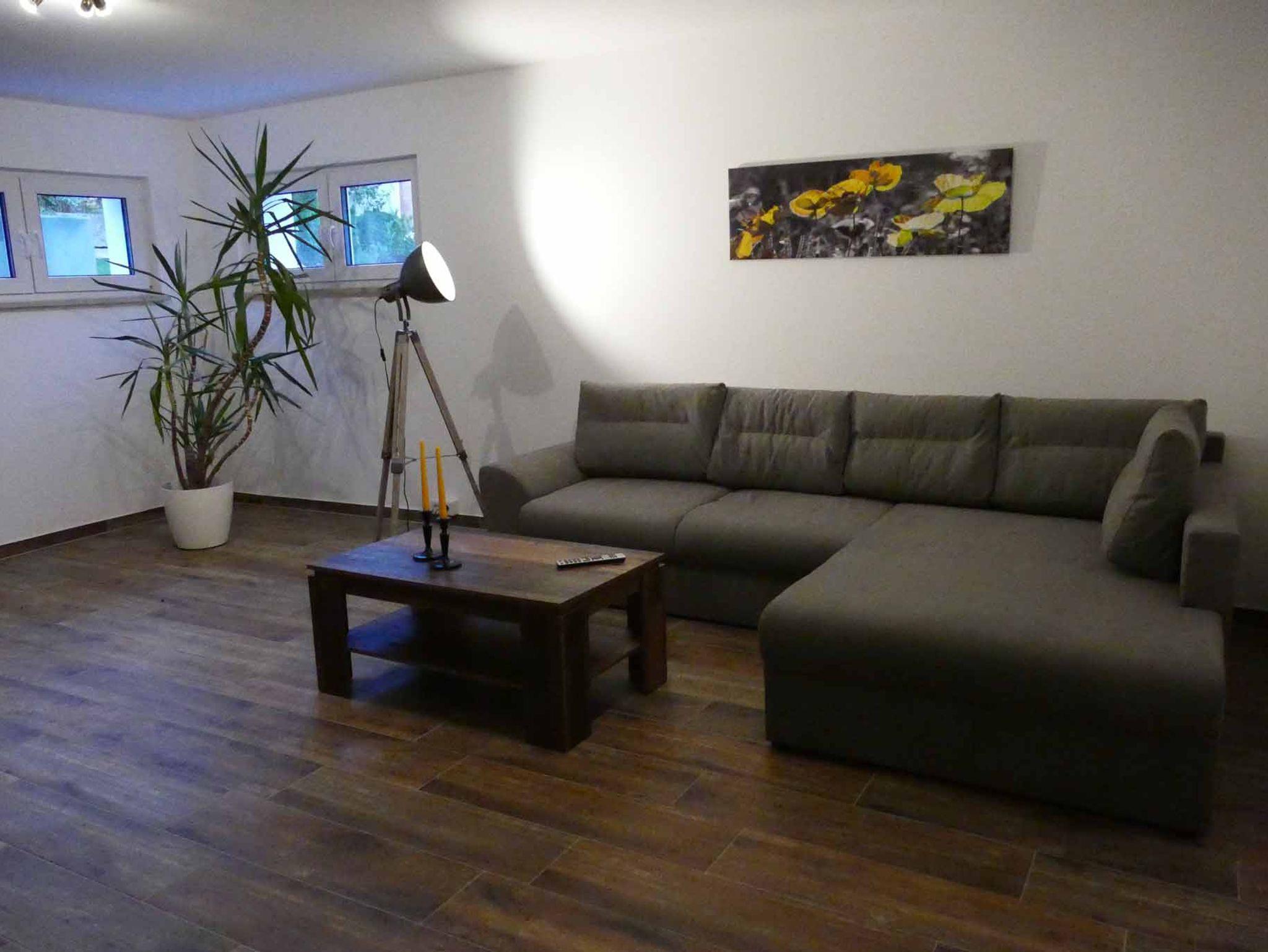 Freuen Sie sich auf eine weiträumige Ferienwohnung, die mit ihren lichtdurchfluteten 88 Quadratmetern Wohnfläche auf zwei Etagen die Möglichkeit bietet, sich auch einmal zurückzuziehen. Im Erdgeschoss befinden sich die beiden Schlafräume, das Badezimmer und die ausgedehnte Wohnküche. Von hier aus gelangen Sie über eine offene Wendeltreppe ins Souterrain und in den großen Wohnbereich mit gemütlicher Eckcouch und TV.