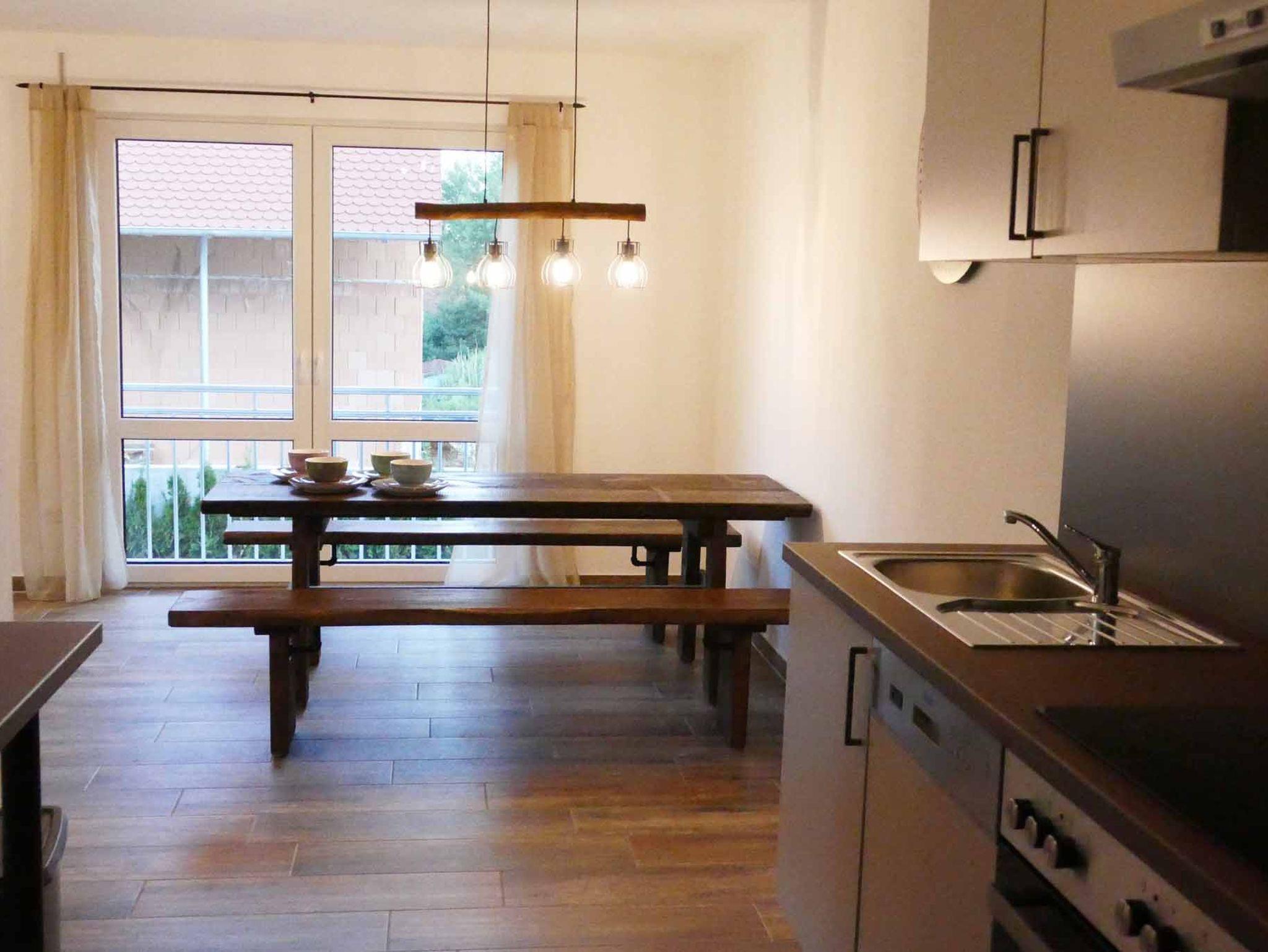 Alle Wohnungen verfügen über eine komplett ausgestattete Einbauküche mit Herd,