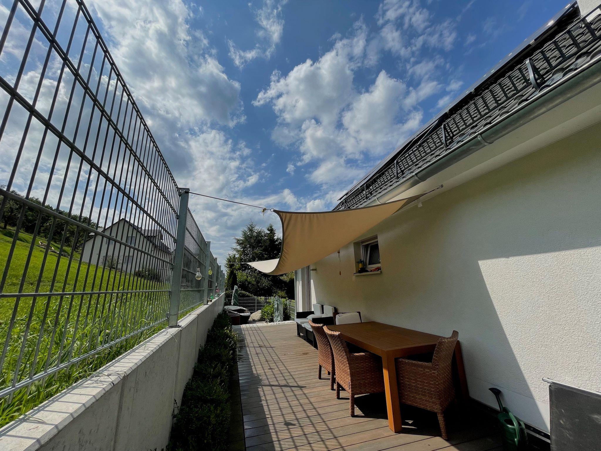 Das Haus wurde XXXXXX neu gebaut. Die Wohnung hat eine Größe von ca. 95 m². Sie ist barrierefrei und bequem mit einem Aufzug zu erreichen. Sie verfügt über zwei Schlafzimmer und einen großen Wohn-, Ess-, Küchenbereich. Das Bad verfügt über eine Dusche und Badewanne, Doppelwaschbecken sowie WC. In allen Räumen, ausser Bad, ist ein handgehobelter, geölter Eichenparkett verlegt, der für ein angenehmes Raumklima sorgt. In den Sommermonaten können Sie Ihren ersten morgendlichen Kaffee oder den letzten abendlichen Wein gemütlich auf dem großen Balkon, mit Blick auf den Brombachsee oder auf der großen Terrasse mit Blick ins Grüne genießen.